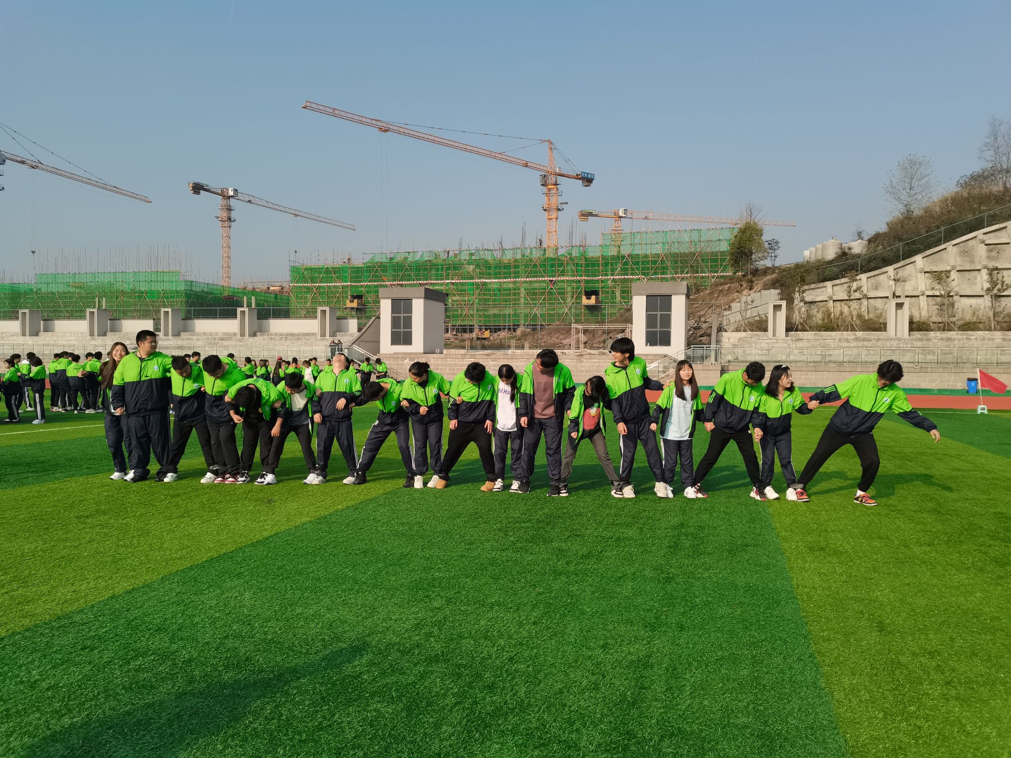 在接下来的“挑战150”项目中将以小队对抗的形式展开,六个小队分别完成四个小项目,即击鼓颠球、穿越时空、大河之舞、激情节拍。在练习的过程中,由于队员们对项目的不熟悉以及团队的默契度不够,导致练习效果不理想。最后队员们向教练请教项目技巧以及不断地总结失败经验、磨合调整,终于找到了完成任务的方法。在项目结束后,队员们也发表了自己对挑战150项目的心得体会。他说,“挑战150这是一个团队项目,需要队员们不断地沟通、总结、调整与提升,队员们只有在经历一次次的挫折才能形成团队合作,团队合作是团队成员一起通力合作形成的力量。同时这个项目也增进了我们对彼此的了解,缩短了彼此的距离,提高了我们的集体荣誉感。”