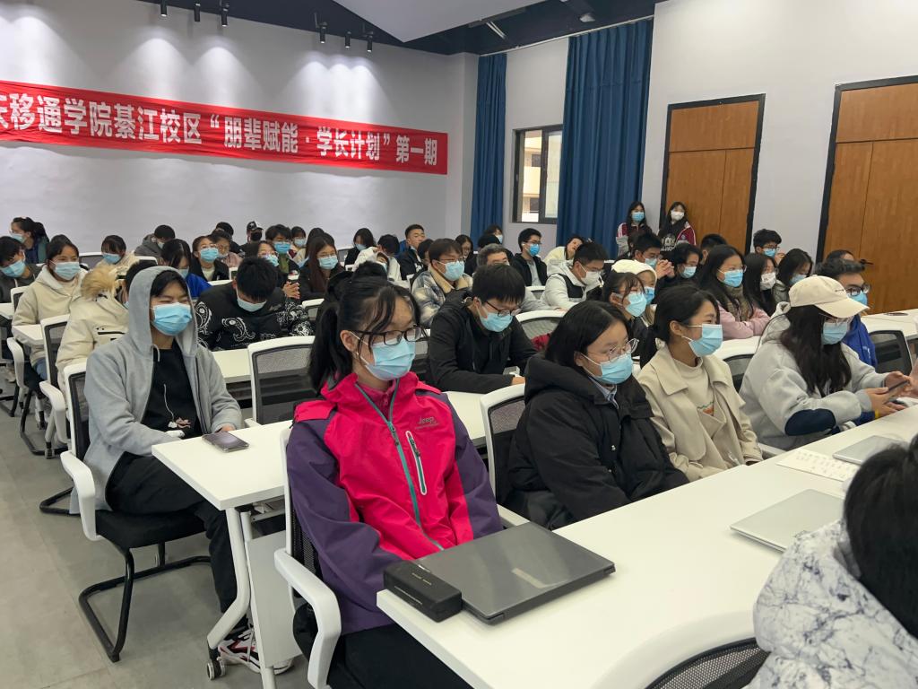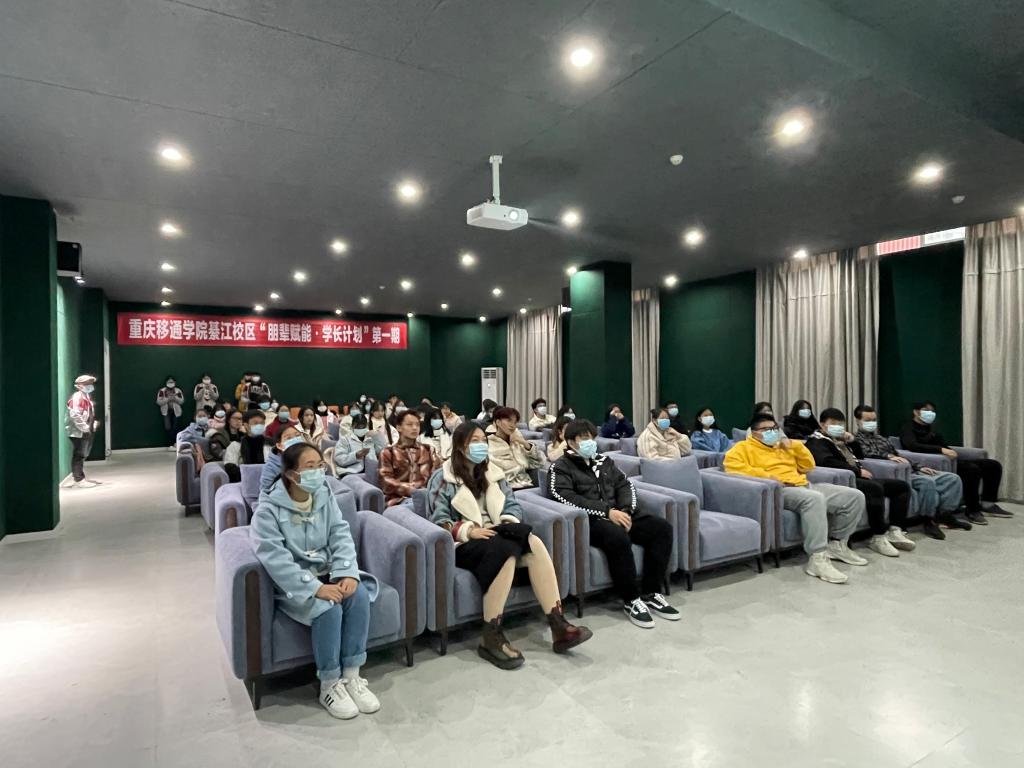 为深入贯彻完满教育理念,落实《中共中央国务院关于进一步加强和改进大学生思想政治教育的意见》有关要求,彻底实现书院“全员育人、全过程育人、全方位育人、全天候育人”模式,重庆移通学院重点搭建双校区资源共建共享平台,推动创造社区共享与朋辈互助的新圈层,完善“学长”资源共建、“学长”经验共享新生态。11月12日下午,我校綦江校区“学长计划”第一期活动在綦河书院正式启动。本次活动启用4个会场,受疫情影响,第一期“学长计划”采用的是直播分享的形式,学长学姐与同学们隔空对话,活动共有300余名新生参加观看。