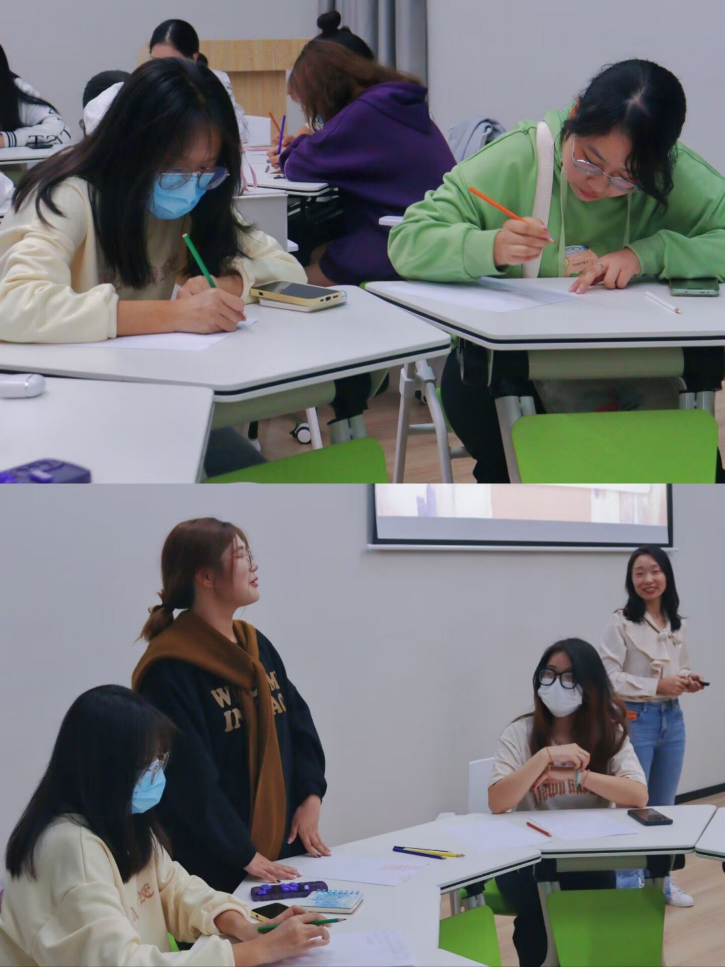 凡事预则立,不预则废。制定未来计划,是不迷茫最关键的一步。作为初步的自我认知,林红老师让每一位同学在纸上分别写下二十个词来形容自己并与他人互相介绍。欢声笑语的互动中,同学们逐步明晰了自我。林红老师趁热打铁,向同学们列出大学生涯不同阶段中的关键任务,引发在场同学的思索。