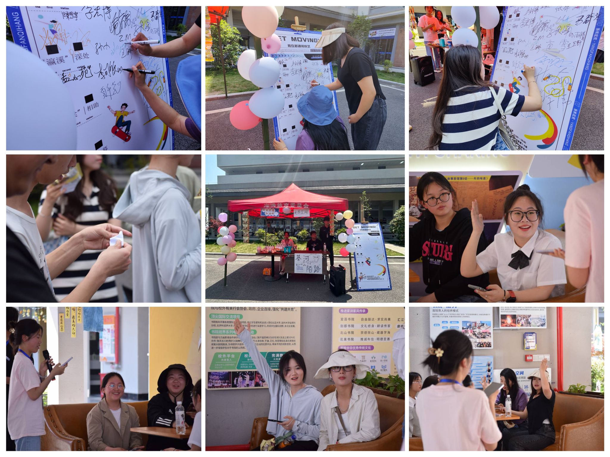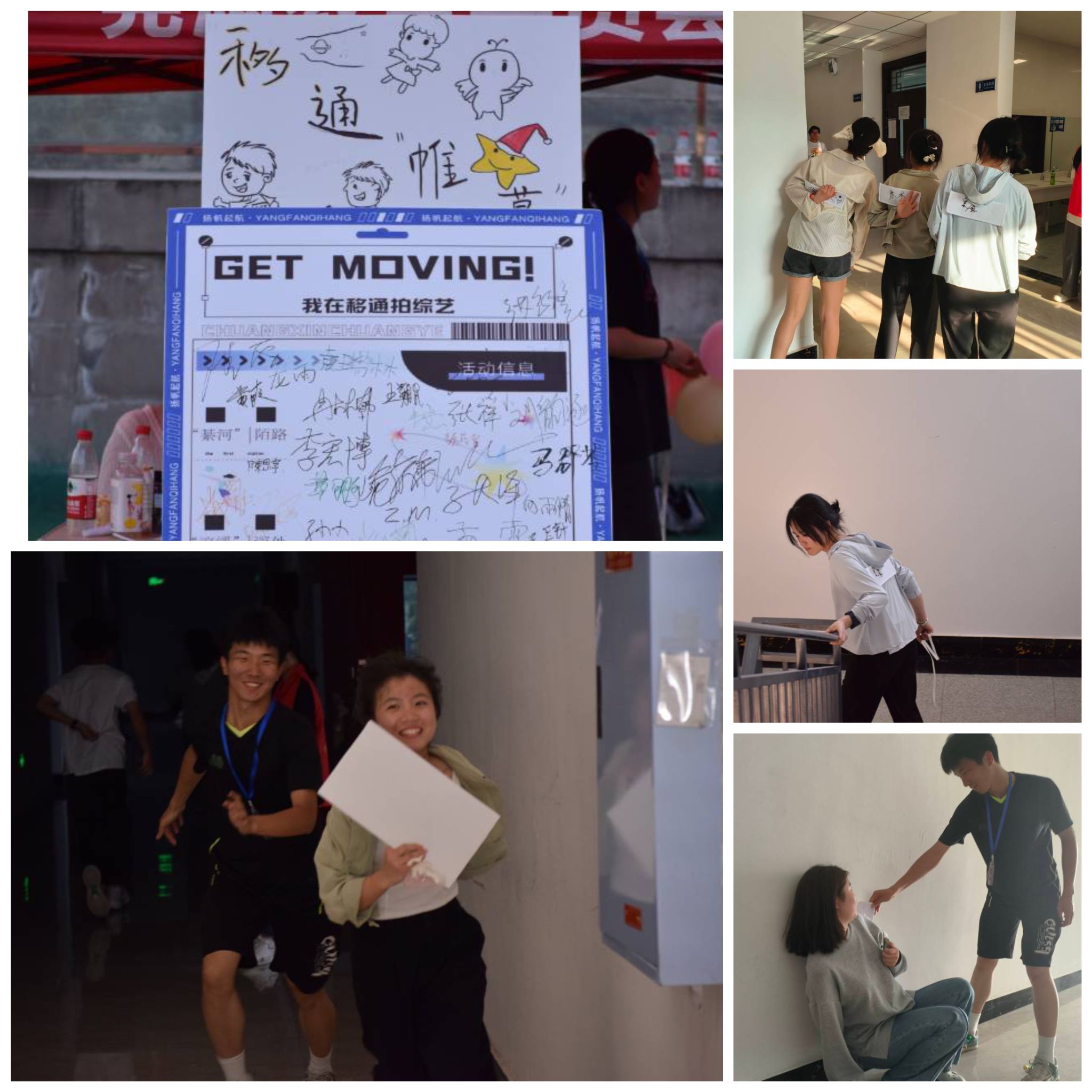 FUN肆开跑,向健康打CALL,SHOW向上活力,以运动逐光影,承初心历前行!为营造积极、团结、凝聚的气氛,进一步探索以运动为载体,全面释放压力、积极应对专业学习的新途径。增强学生身体素质,增进同学之间的交流,培养同学们团队协作精神。丰富校园文化生活,提高学生的运动健身意识和身心健康水平。数字经济与信息管理学院管理科学与工程类3-5班&大健康管理学院体育经济与管理1-3班于4月16日15:00—18:00在綦河书院中庭、瀛溪书院中庭、玉棠书院中庭、操场举办了“Get Moving!我在移通拍综艺!——“綦”遇之旅主题年级会。此次年级会采用综艺的特色形式展开,借助视频和照片来记录移通er运动和奔跑中的欢声笑语,来到现场的参赛人员和工作人员都佩戴校徽,衣着整齐,大家期待着在此次年级会中能共同感悟团队协作的力量与竞技体育精神。