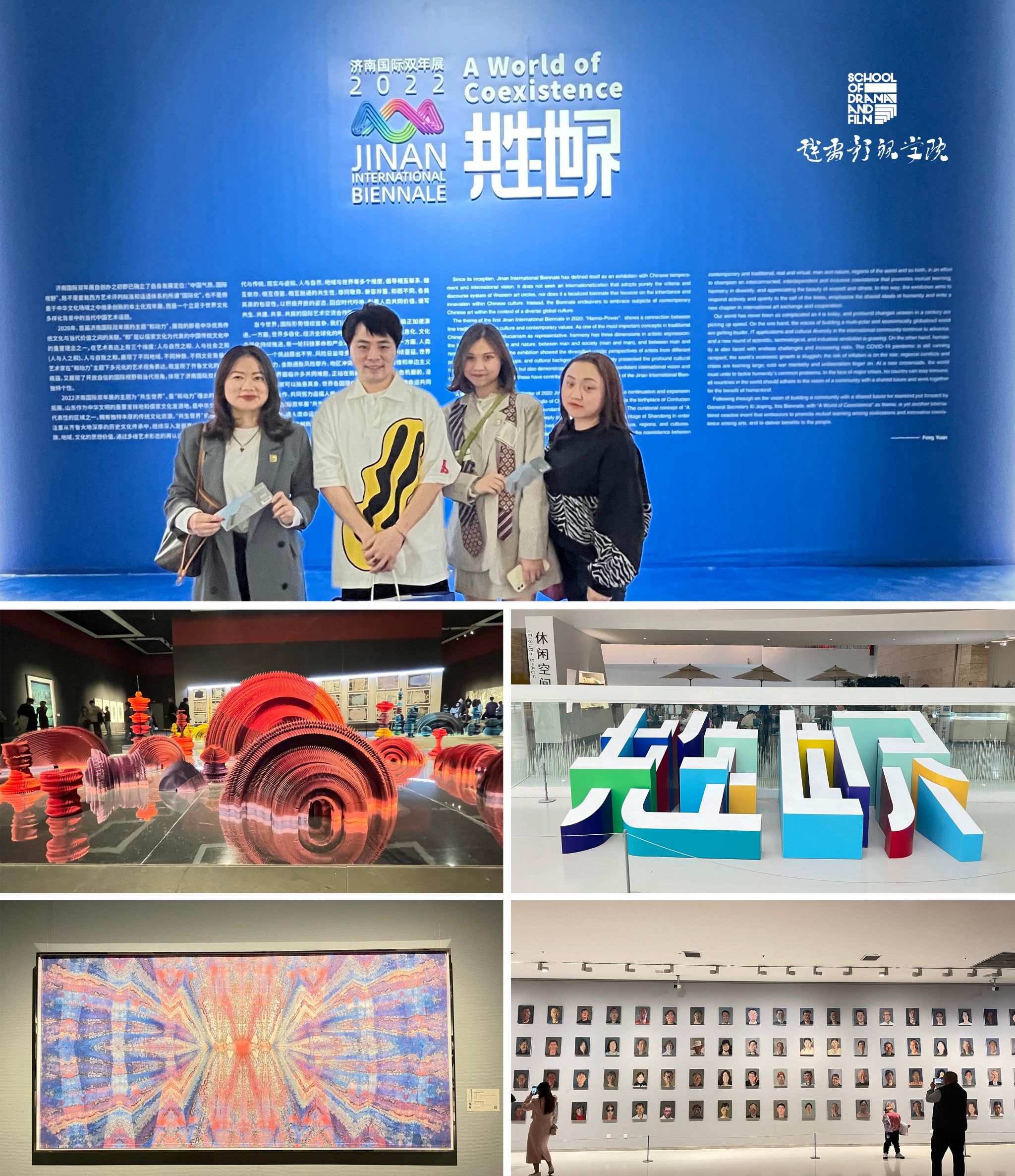 此次戏影考察团还参观了济南国际双年展,本次济南国际双年展以“共生世界”为主题,内含“当代与传统”“人与自然”“地域与世界”“现实与虚拟”“科技与艺术”“异彩与同源”六大版块。作品体现了艺术与科技的跨界融合,多为科技与艺术结合,大量使用虚拟仿真、AR、VR、人机交互、3D打印、影像互动等科技应用的作品。本次展出内容正与戏影专业发展和学生培养方向高度融合,打开了戏影考察团队的视野,为今后的发展融入了更多新思想。