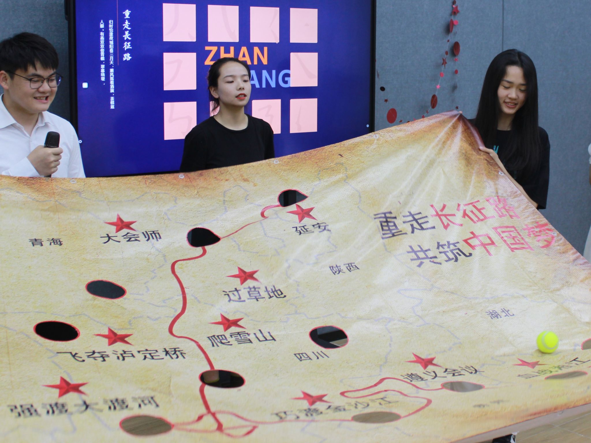 “重走长征路”活动中,几名参赛同学分别在延安、瑞金失败,只见他们露出了失望的神情。但在浩荡的历史长河里,这看似只是一个地方小小的失败,却有无数英烈长眠于此。主持人讲解之时,同学们露出了若有所思的深情,陷入深深的思考,怀念之中。通过模拟中央红军的长征路线,使同学们充分体会并缅怀革命先烈的丰功伟绩的基础上加深对“责任、使命”的含义的理解。