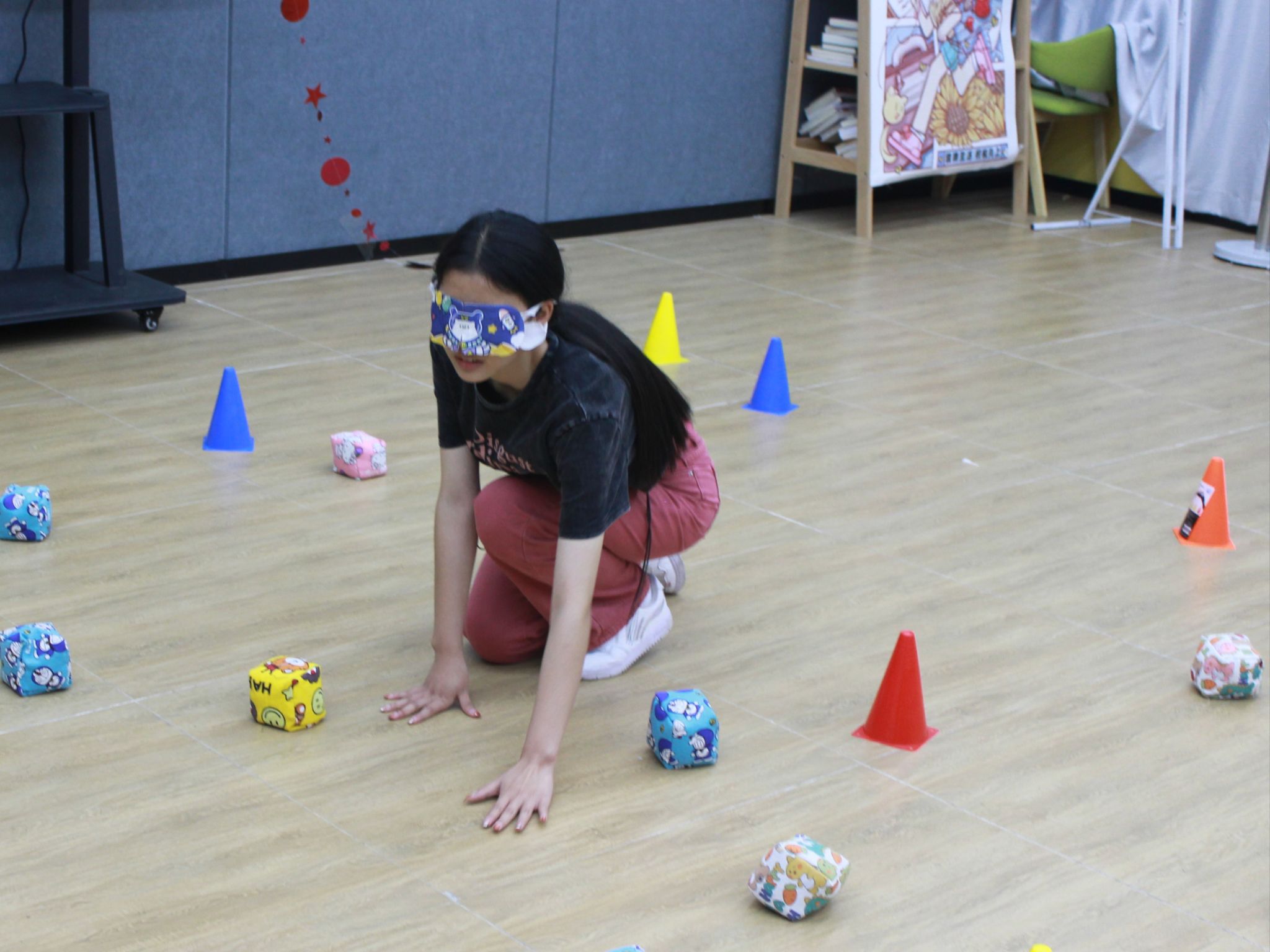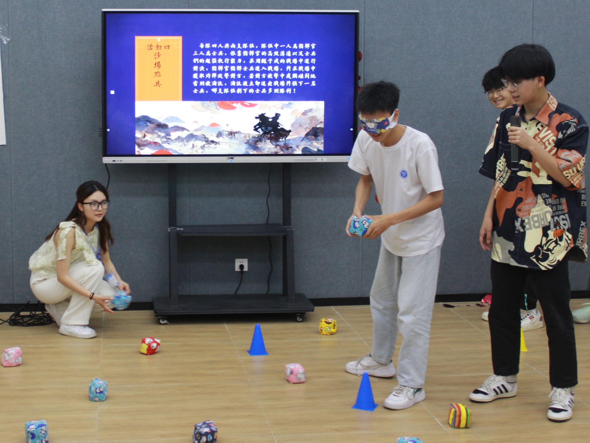 同学们正襟危坐,认真观看纪录片《新兵请入列》片段。而其中几个男同学更是热血沸腾,已经现场开始咨询新生入伍的要求。为更好的激发同学们的热情,传承英烈,在战场中无惧艰险的精神,现场玩起“蒙眼士兵”的游戏,每队四人共两支队伍,指挥官指挥士兵进入战场,并在战场中获取炸弹攻击对方,同学们兴致勃勃,积极参加,沉浸其中,只见女生巾帼不让须眉,非常骁勇,接连三次淘汰对方,而被淘汰的男同学也越战越勇,不服输请求再来一次。在欢声笑语中,同学们感悟到了英烈的英勇,表示在日常工作生活中,更要做到明理、增信、崇德、力行,做到悟思想、办实事、开新篇。
