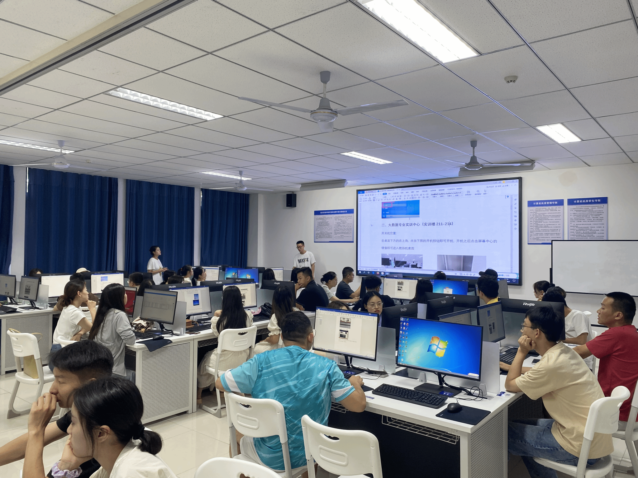 新学期,新开始。为提升我校大数据学院,计算机科学学院新入职老师的专业能力素养,帮助新教师更好的适应云机房设备的操作,重庆移通学院綦江校区实训中心于2023年9月3日下午2点在实训楼214机房举办了主题为“实训楼云机房设备使用培训”的活动,为新老师如何使用云机房实验室进行专题培训。