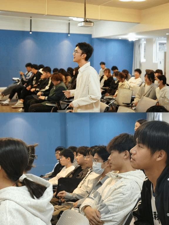 交流会上,首先通过播放片段视频《我是演说家》,抛出问题:成功是什么?“我认为成功是能够拥有房子、车子、票子”“成功是能够做自己”“成功是要有高的社会地位”……争先恐后的回答,和而不同的声音在小石潭多功能室穿梭,视频尾声说到成功是无论有多少人向你兜售所谓的人生经验、现实残酷,你都可以坚定的选择你自己想要的生活,无论多少人对你否定,仍然坚持选择自己喜欢的事情,最遗憾的事情从来不是失败,而是我本可以。随后调研同学们目前的学习与生活状态,答案各有不同,同时也根据切实所需为同学们制定相关主题活动、团日活动、团队建设等,希冀能让他们从中受到启发,找到正确的发展方向,凭借着“我本可以”奔赴热爱与山海!