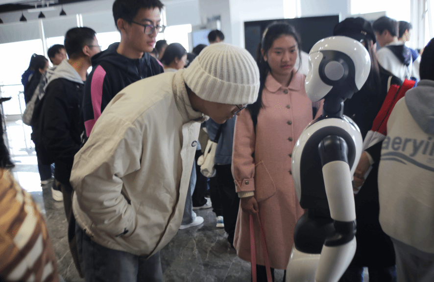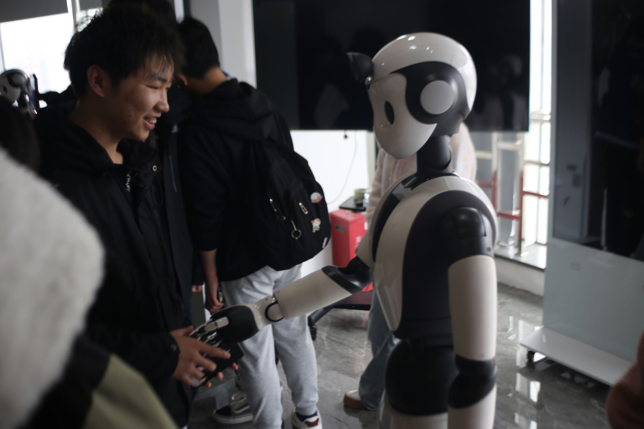 首先,同学们参观了达闼机器人股份有限公司的设施设备,同学们全神贯注地观看,积极发问,随行的公司内部工作人员也结合专业知识进行了详细的解答。其中机器人是同学们最感兴趣的,在参观学习的过程中,学生们积极参与了与智能机器人的对话、握手和拥抱等互动环节。这一独特的体验不仅让学生们拓宽了视野,了解了人工智能在现实生活中的实际应用,还激发了他们对算法、人工智能和数据结构等相关知识的思考与应用。