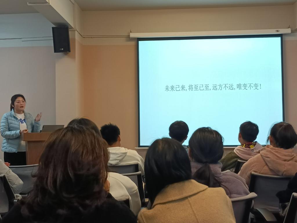 第一位分享的老师是柴平老师,她分享的主题是:“马云:未来已来”,在柴平老师的分享中,同学们了解到了马云成功过程中遇到的机遇和挑战,最后,柴平老师以马云的名言结束了她的分享:未来已来,将至已至,远方不远,唯变不变!