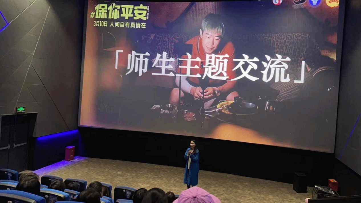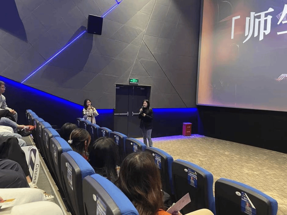 观影结束后,现场展开了师生主题交流会。《保你平安》是一部现实主义喜剧片,这部作品中,既有大鹏的喜剧基因,也有他的现实主义关怀。那么,什么是现实主义电影呢?现实主义电影又为什么能够实现票房的高升?就这两个问题,电影评论中心的刘静蕊老师给现场学生们解读了现实主义喜剧片。刘老师提到,现实主义电影既传达了现实矛盾,又照顾了观众的感受,非常贴近生活,能够引起观众共鸣。高速发展的网络给国内市场的现实主义题材带来了机会,但也要依托新青年的支持。