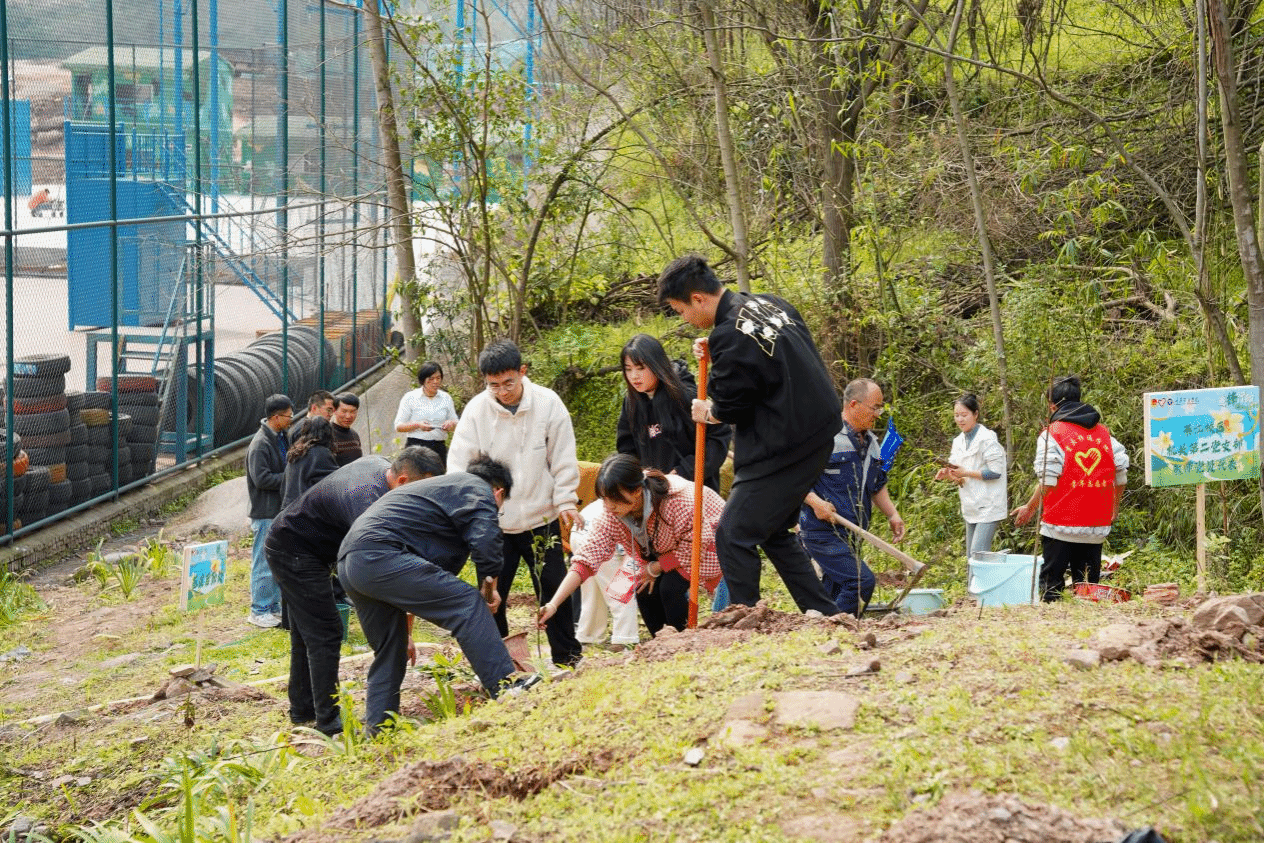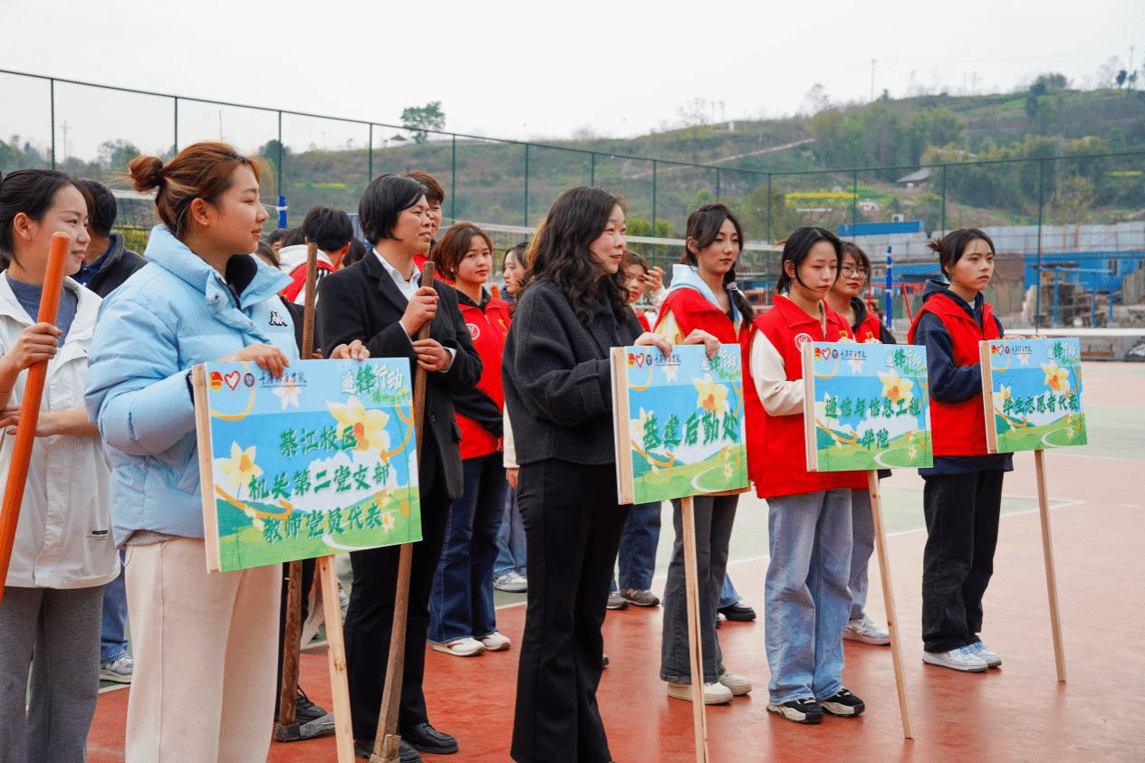 春回大地万物苏,植树添绿正当时。在第47个植树节到来之际,为深入践行“绿水青山就是金山银山”的生态文明理念,充分发挥基层党组织在生态文明建设中的示范引领作用,3月12日下午,重庆移通学院綦江校区机关第二党支部组织教师党员联合校团委、基建后勤处共50余人,在学校二期排球场外后山处开展“追‘锋’行动,播种绿色希望”植树节主题党日活动,以“党建红”引领“生态绿”,为学校添绿增美,为发展注入绿色动能。