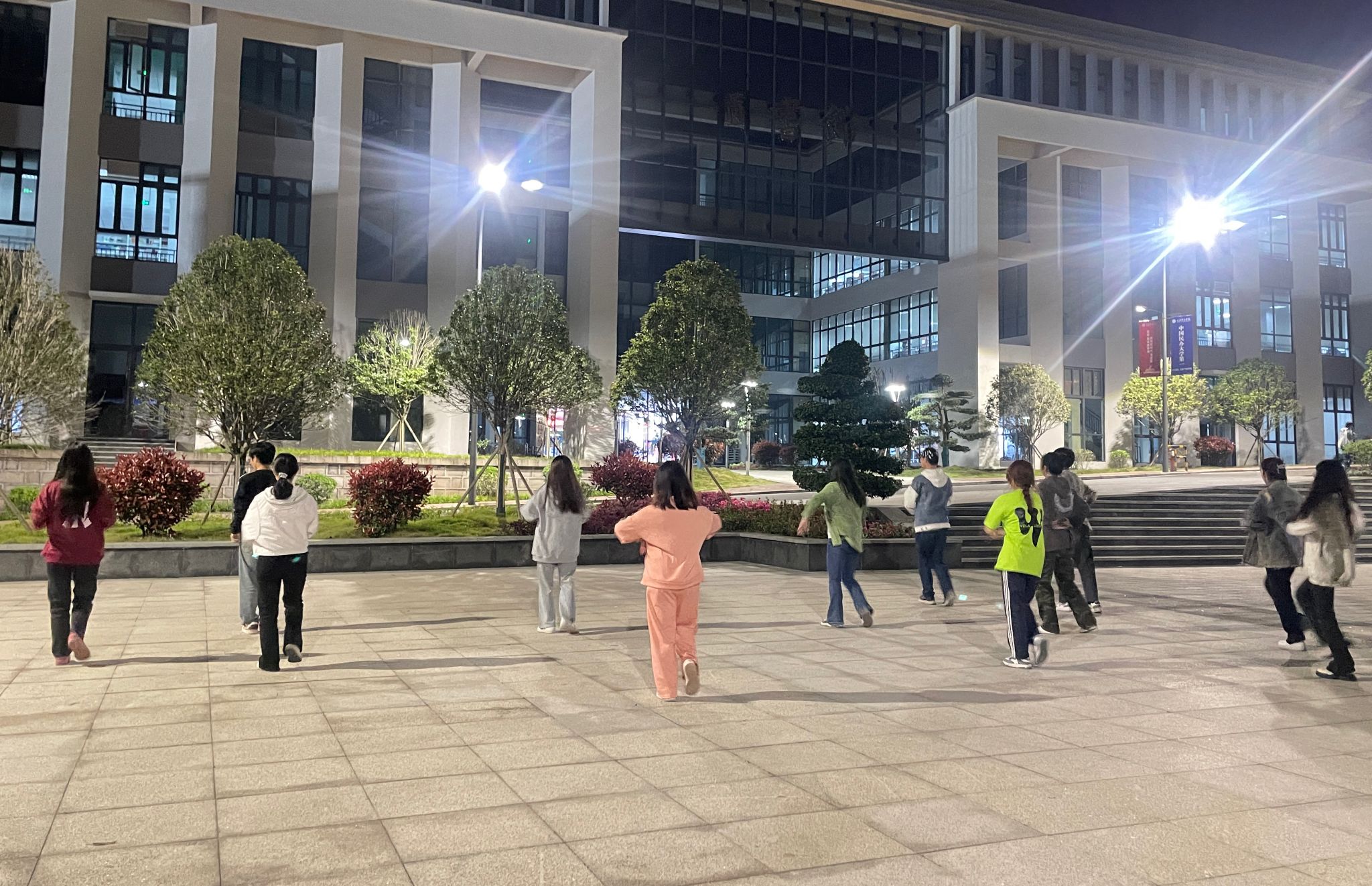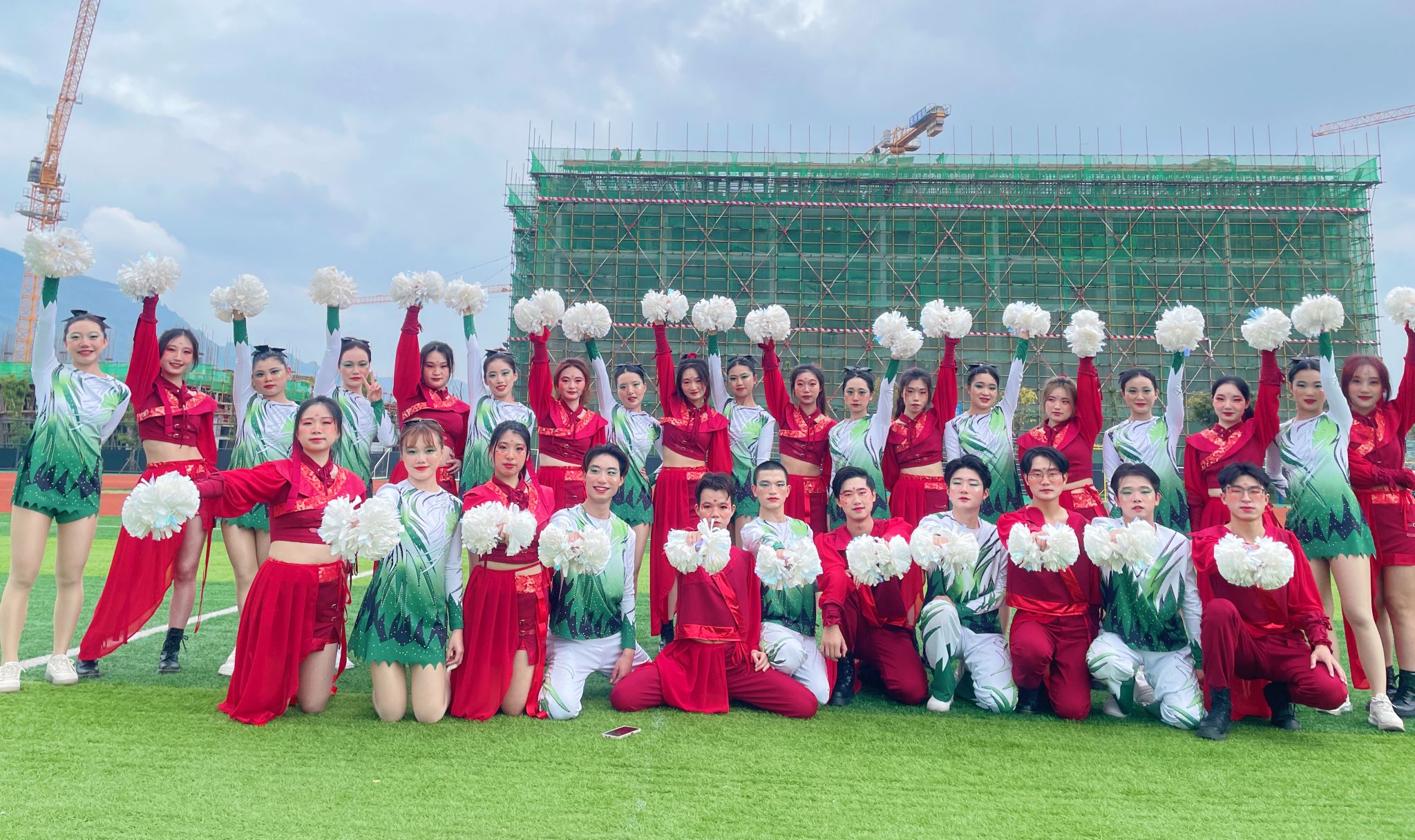 如此优异的成绩,更离不开教练们的悉心指导和老师们的温情陪伴。同学们训练过程中,竞体的老师从队形的编排、动作的弧度到上场下场的表情与姿态,都有悉心指导。学院老师更是时常去现场观看,甚至跟练。一方面督促队员们认真参与排练,不能松懈。一方面为队员们加油打气,激发他们昂扬的斗志。好几次同学们练到凌晨,老师也是全程跟随,时刻关注着学生的状况。