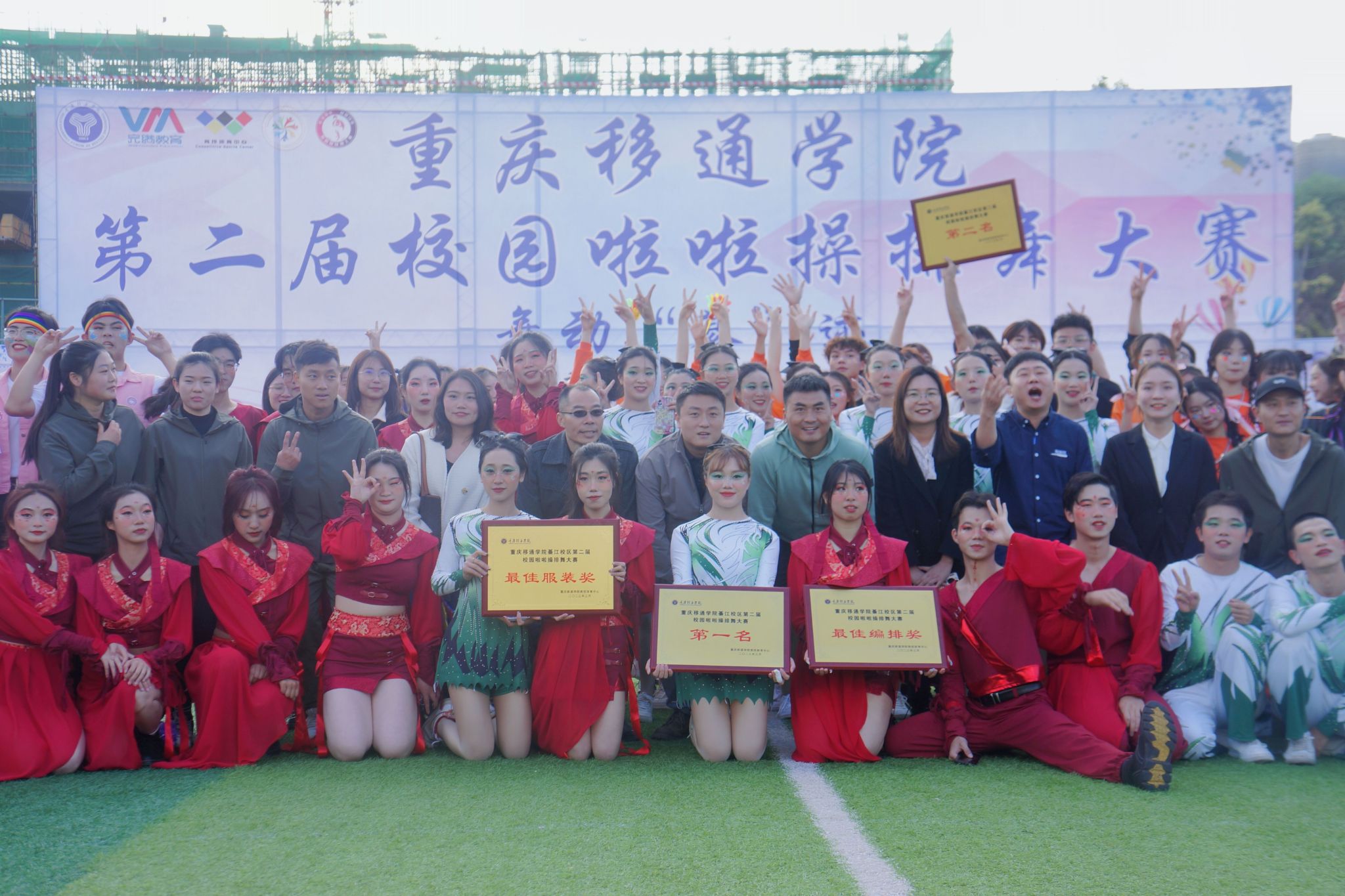 2023年3月29日,重庆移通学院(綦江校区)第二届啦啦操排舞大赛隆重举行。这是校园之风采,更是体育之盛典。15支参赛队伍身着靓丽的服装,挥动着曼妙的舞姿。那梦幻的颜色,轻灵的舞步,是青春的活力。最终,通信与信息工程学院代表队——“绿装红颜队”斩获本次啦啦操单项“第一名”、排舞单项“第一名”,团体“总冠军”之位,同时获得“最佳服装奖”、“最佳编排奖”,以大满贯的成绩收官本次比赛。