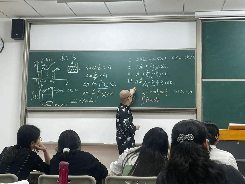 本次公开课程龙老师所讲内容为定积分的定义, 程老师通过数形结合的方式,清晰的讲述了使用”分割——近似——求和——取极限”来求曲边梯形面积的详细过程,其工整的板书、流畅的语言、严密的逻辑赢得了台下老师们的一致好评。