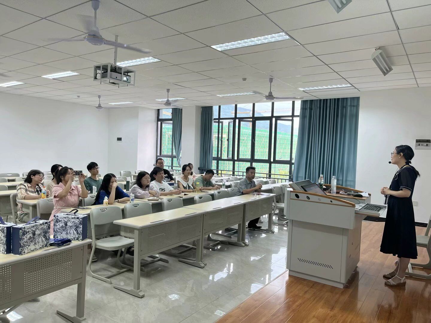 培训分享结束后,唐教授深入到教师团队中,与教师们进行沟通。教师们纷纷表示受益良多,要认真做好本职工作。