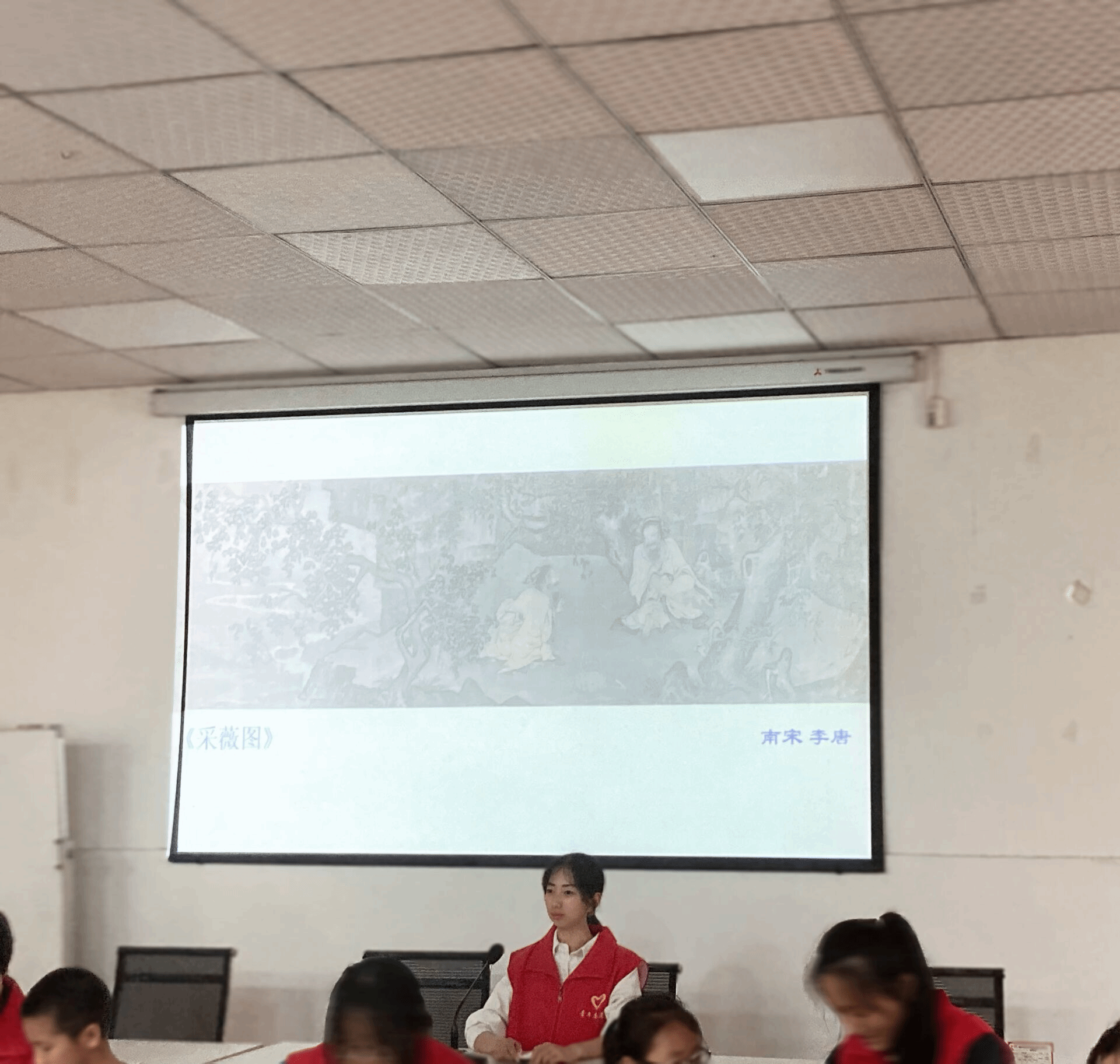 活动伊始,志愿者率先引领小朋友们走进《采薇图》的艺术世界。这幅画作不仅是一幅美丽的画面,更是一部讲述古人生活与情感的历史长卷。在志愿者的讲解下,小朋友们更加深入的赏析了其笔触间的细腻与情感,也为接下来的剪纸与绘画活动铺垫了浓厚的艺术氛围。