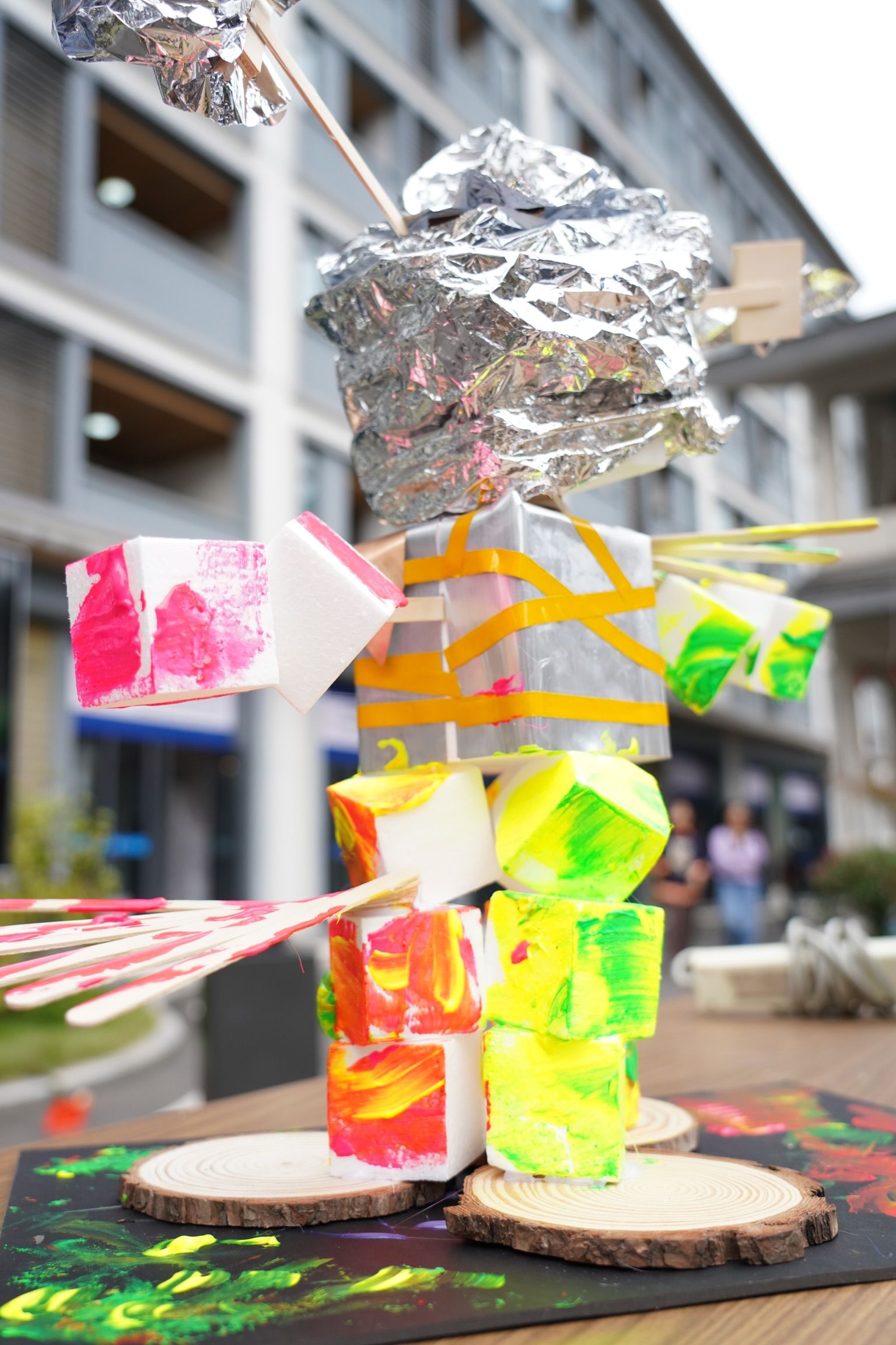 在规定好的时间内,所有小组把机器人作品都做好,便到了活动的第三环节:作品点评。刘佳莹老师对同学们的作品都给予了专业的设计意见与评论,陈轩同玥、黄永佳和刘珂老师也都给出了自己的观看心得,并对学生们进行了鼓励。