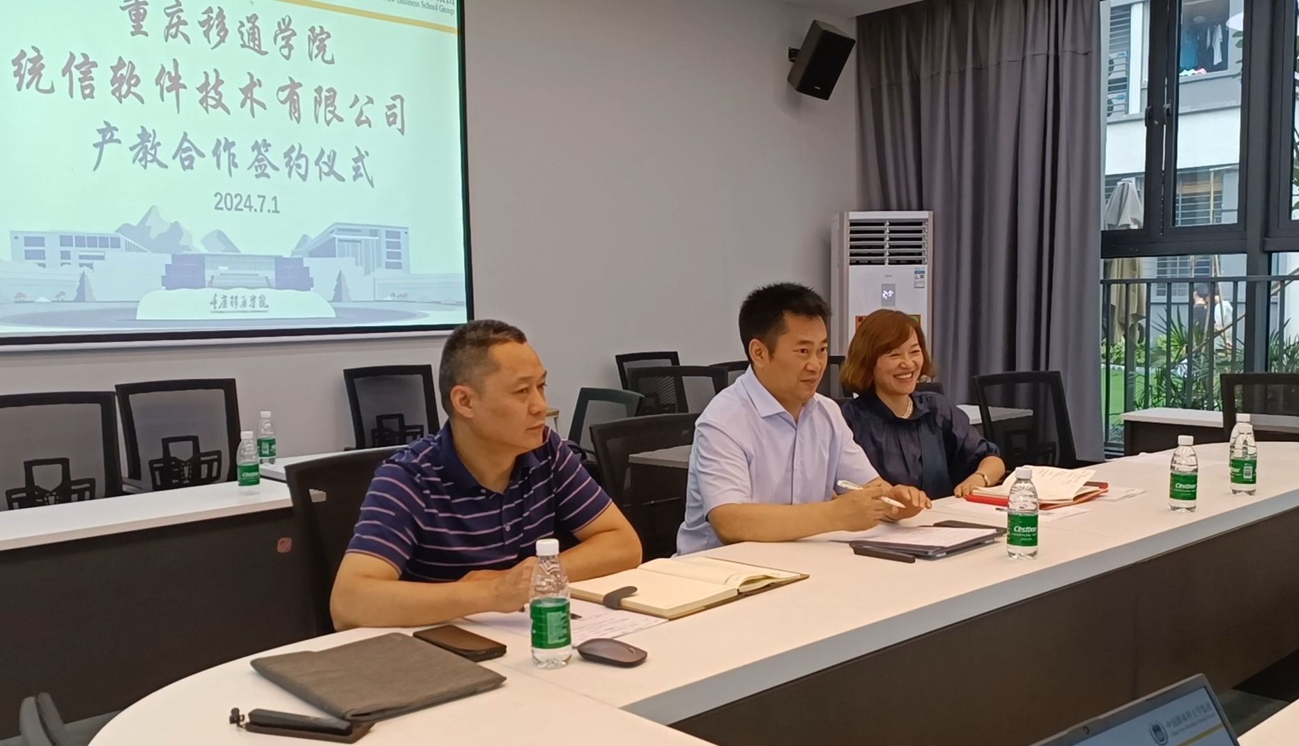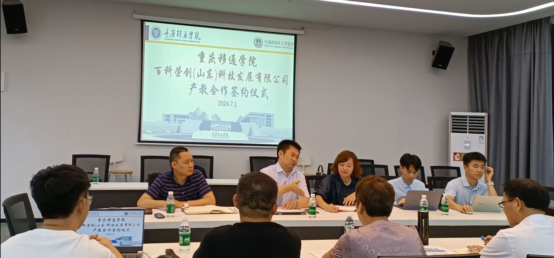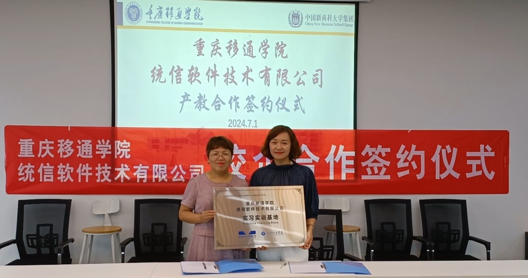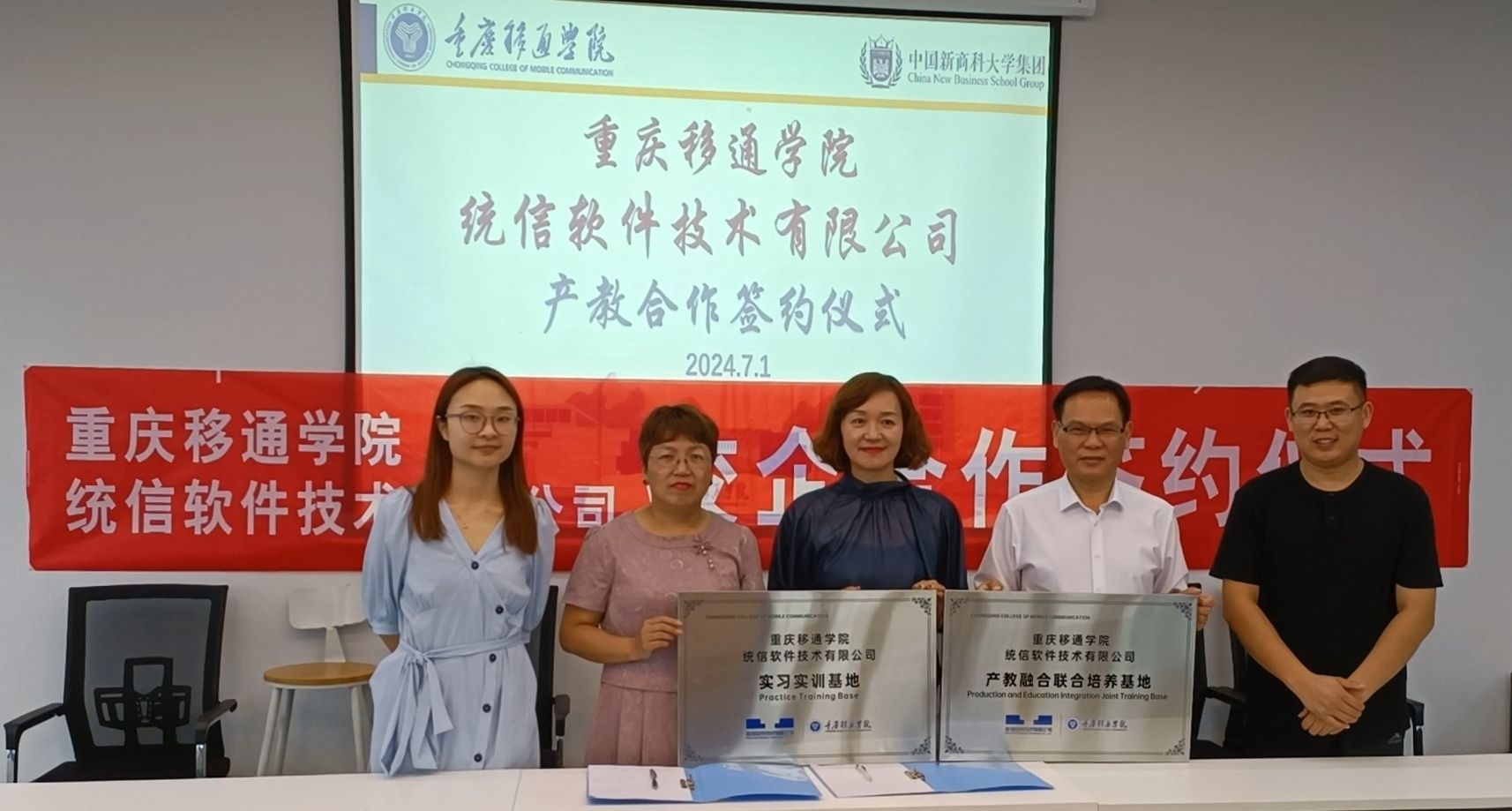 2024年7月1日,重庆移通学院计算机学院在玉堂书院地心会议室成功举办了产教融合签约仪式。本次活动的与会人员,有计算机学院副院长向碧群、林泽金、骨干教师卢星儒等,统信技术软件技术有限公司代表申总,百科融创科技发展有限公司代表张总、冯总等人。