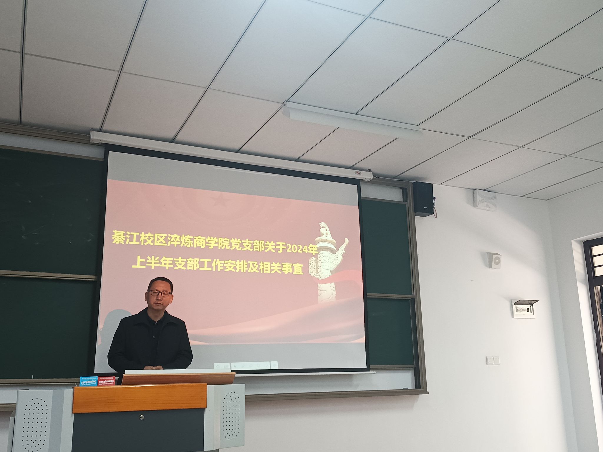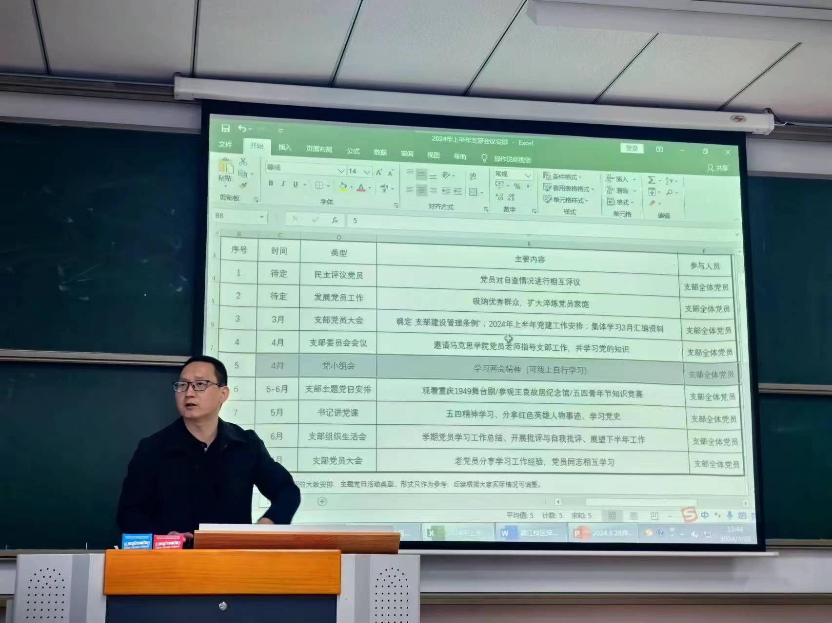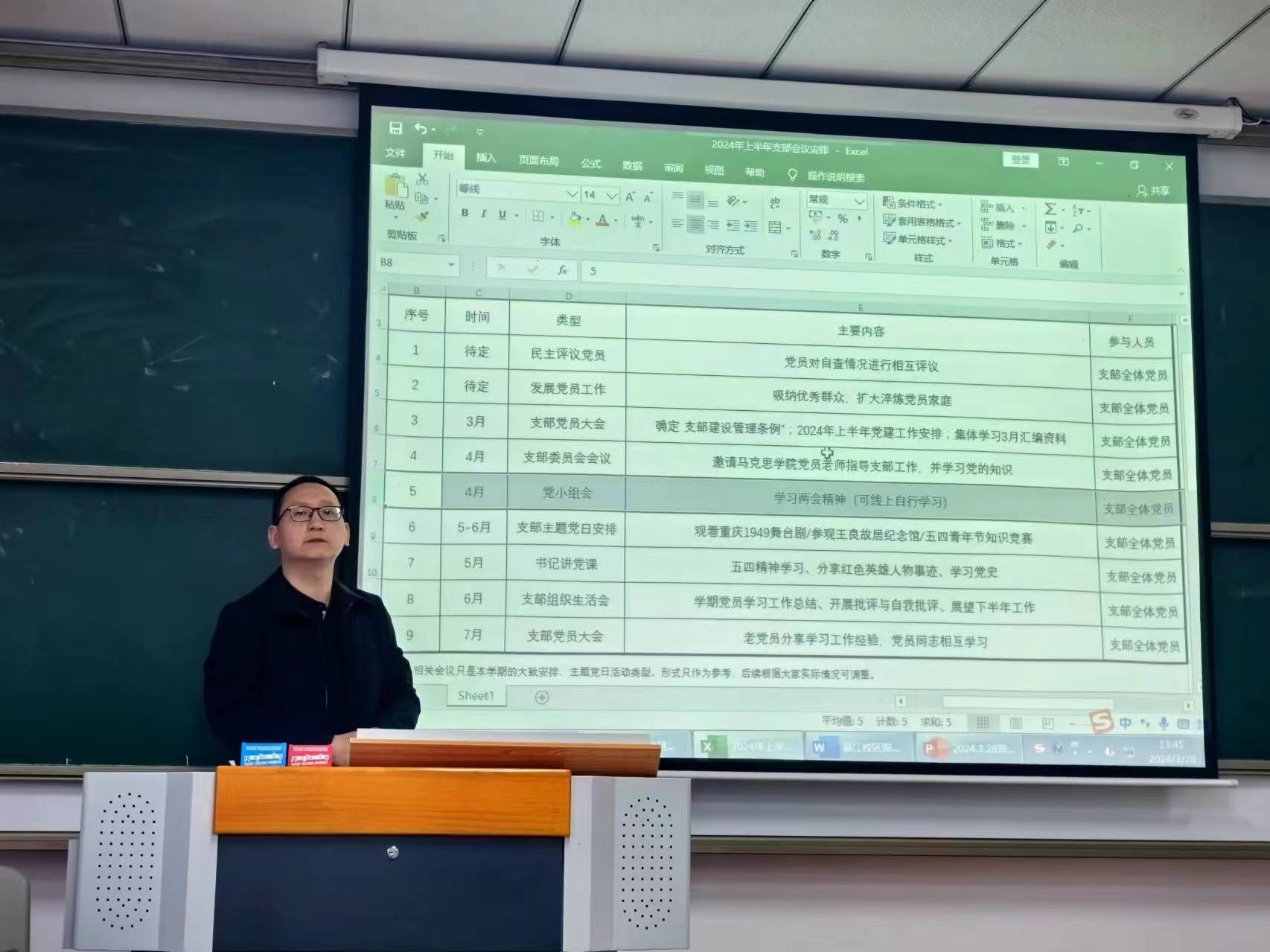 为了深入推进党支部的建设进程,切实提升党员的政治敏锐度和组织纪律观念,綦江校区淬炼商学院党支部于2024年3月28日下午,在智者楼202室召开“2024年上半年党支部工作安排”会议。此次会议旨在精心筹划和高效推进党支部的各项工作,由支部书记范保珠同志担任主持人,学院全体党员悉数出席。