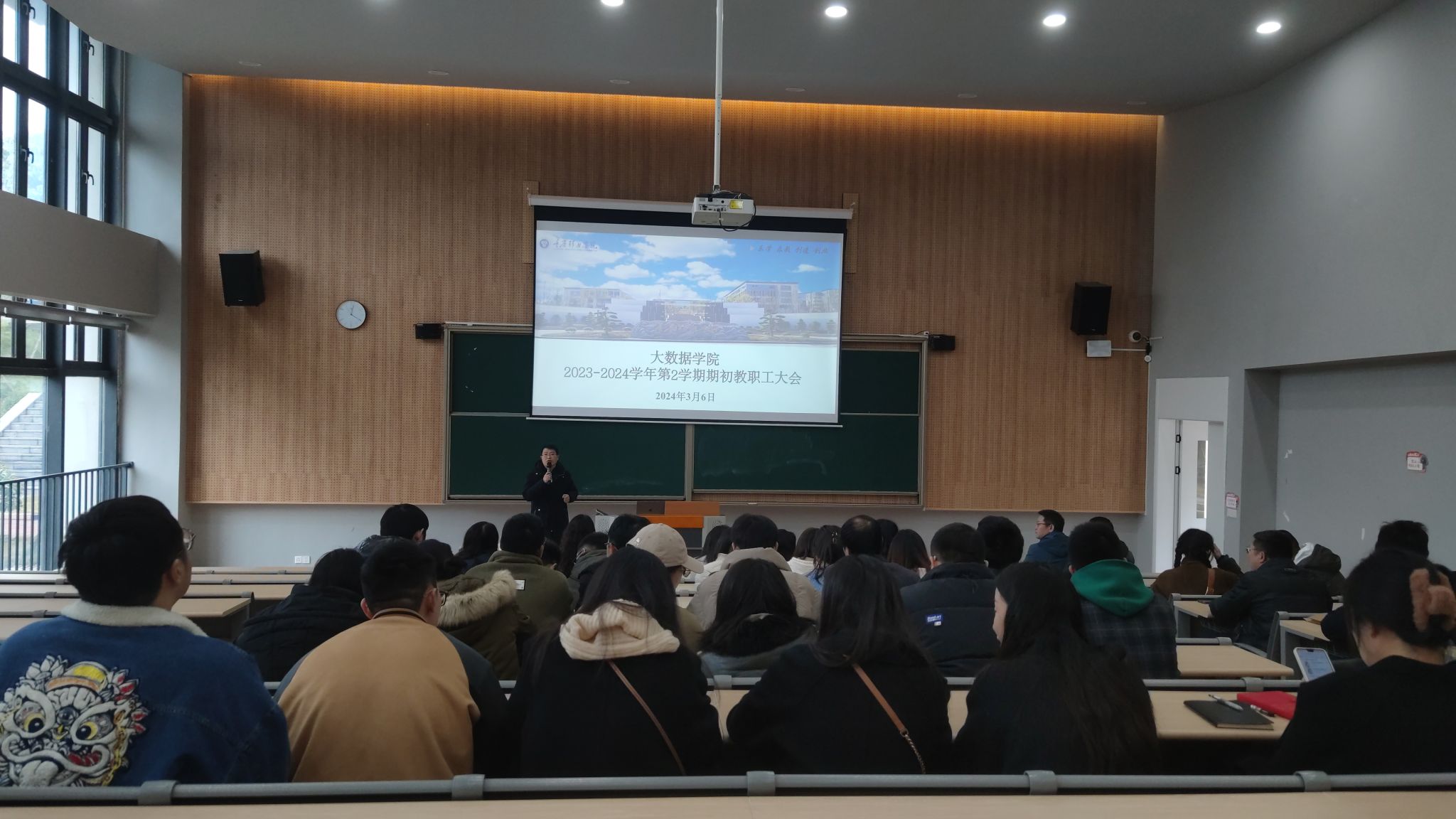 3月6日下午4点,为加强学院工作部署与安排,提升学院整体综合教学能力。大数据学院在衡山书院阶梯教室召开2023-2024学年第二学期期初教职工大会,全面部署了新学期的各项工作安排。此次会议由闫会峰院长主持,吕云山副院长主讲。会议围绕学院安稳、反诈骗工作、毕业设计与毕业实习、师德师风及教风学风等多个议题进行了深入讨论和部署。