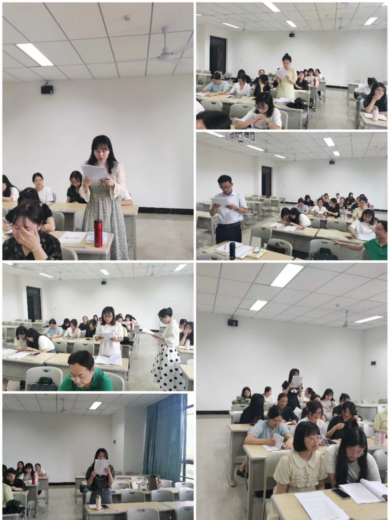 接着,唐孝庆老师号召全体参会教师诵读党的二十大报告原文,用声音传递力量,做踔厉奋发、勇毅前行的新时代教师,为实现第二个百年奋斗目标和中华民族伟大复兴贡献个人力量。每位参会教师都以饱满的热情诵读了二十大报告原文中的一段话,并分享了个人的所思所悟,大家接力完成了对二十大报告的诵读和学习。