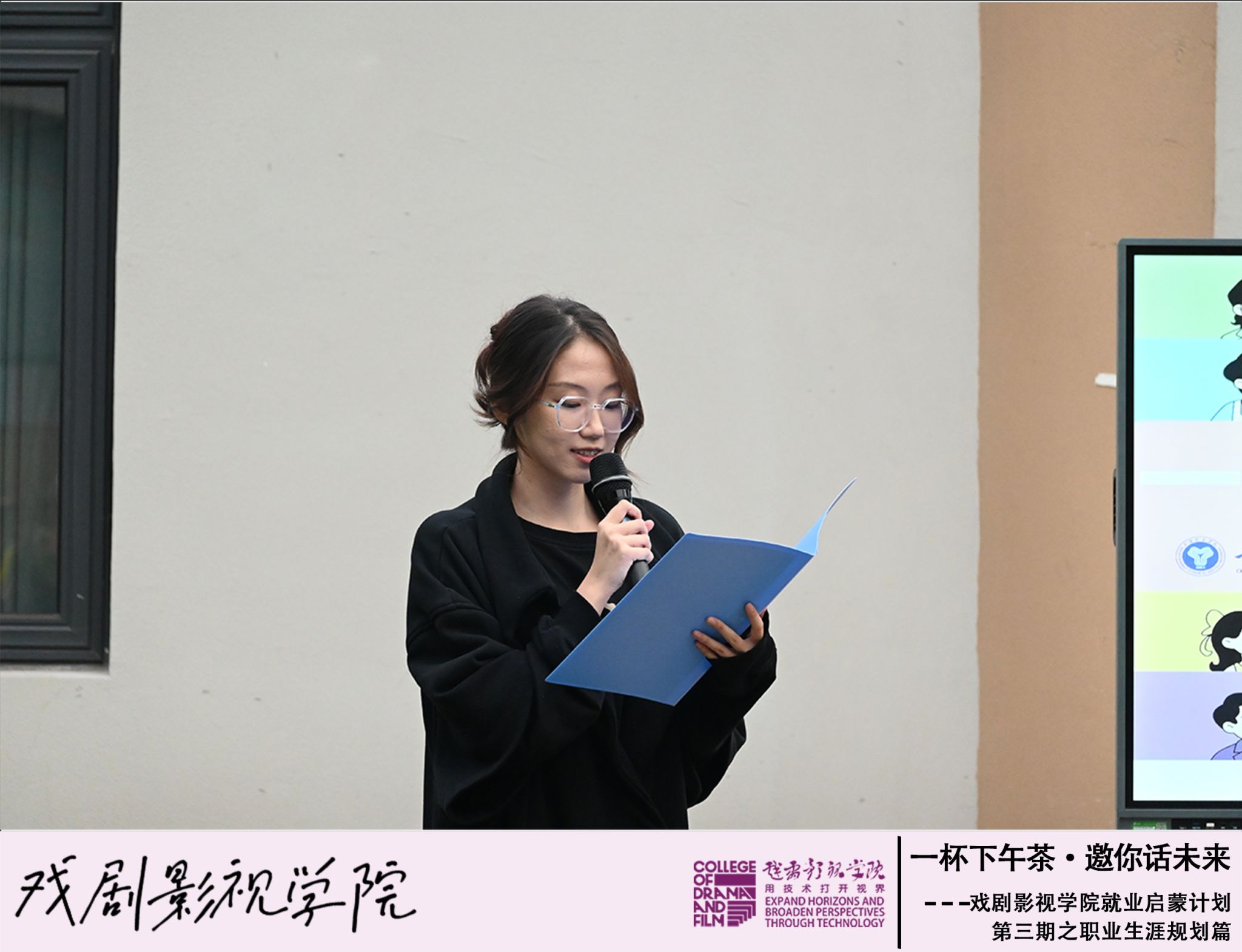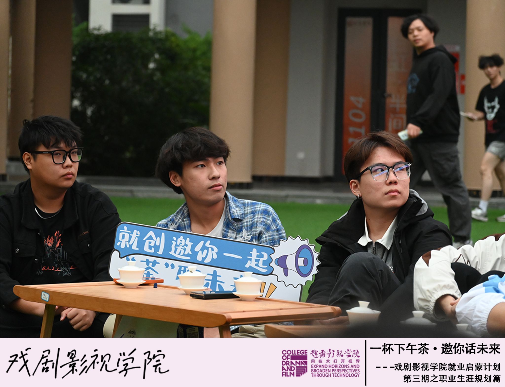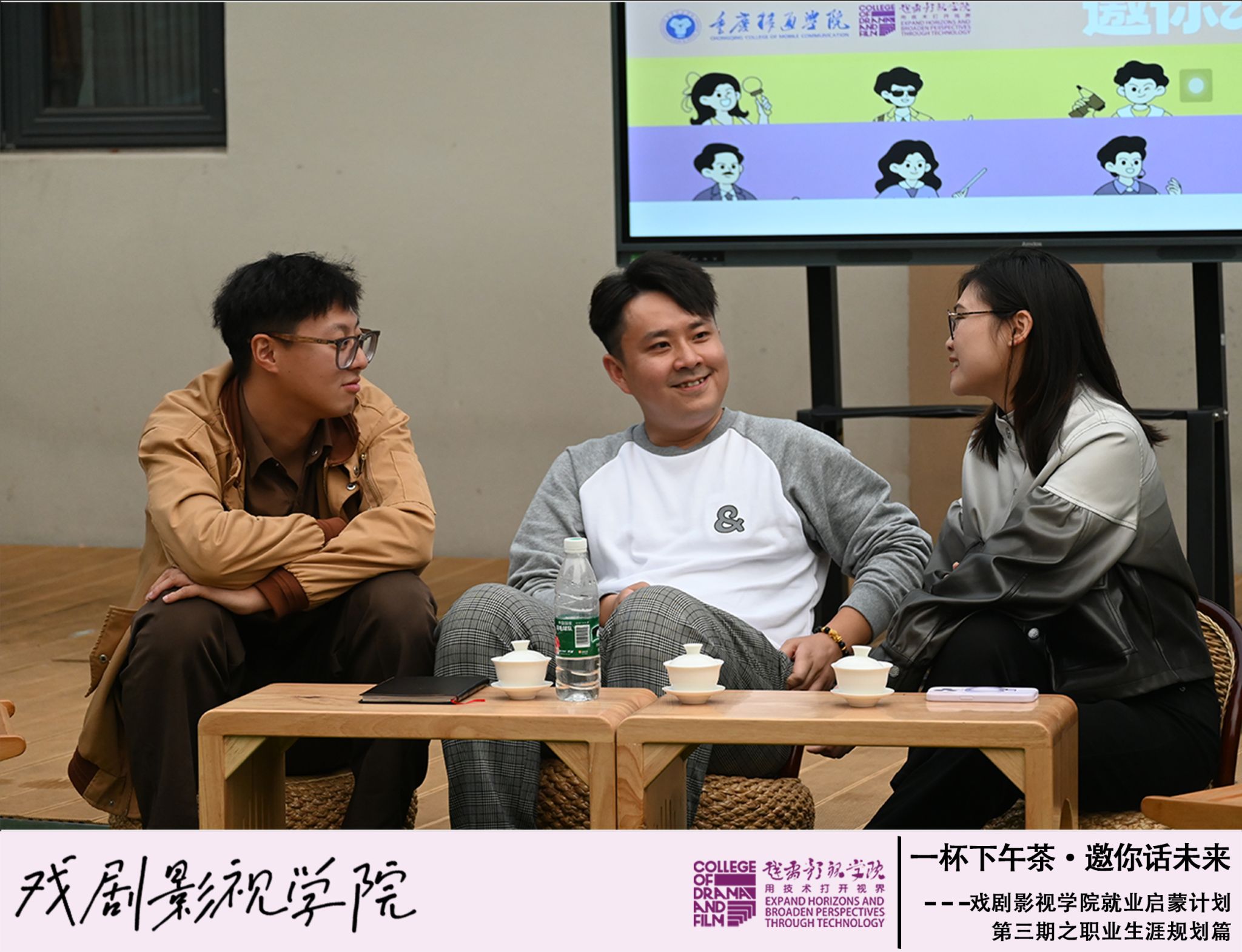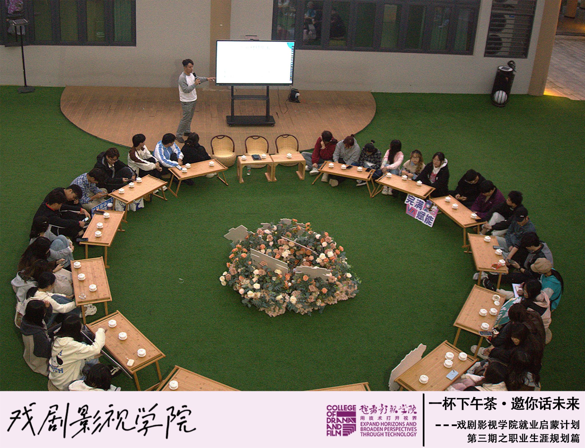 大学生活丰富美好、多彩绚丽,2024级新同学进校已有2月,在体验大学全新生活方式的过程中,新鲜感褪去之后的迷茫感也接踵而来。为帮助戏影学子制定正确的学习规划,引导他们学会有意识地把握自己的人生方向,及早关注个人成长与发展,2024年11月6日,戏剧影视学院“一杯下午茶·邀你话未来”就业启蒙计划第3期在古剑书院得意·中庭成功举办,本次活动荣幸邀请到了重庆移通学院就创导师库导师、全国首届职业生涯规划大赛铜奖得主罗德康、戏剧影视学院学工办主任曾玉娇、辅导员廖炳屹3位老师,戏影就创助理团携手50名新生戏娃围坐一堂,共话未来。