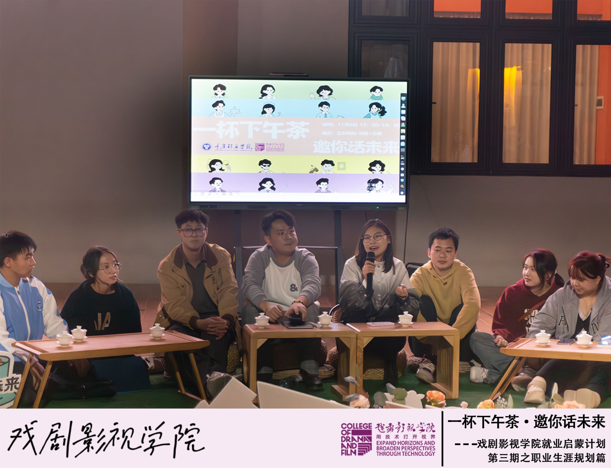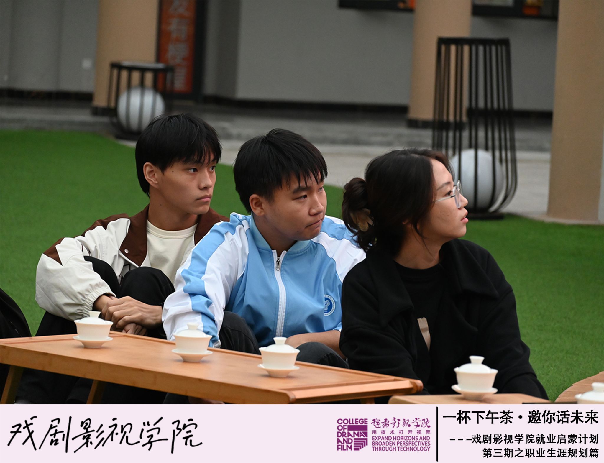 本次“一杯下午茶·邀你话未来”茶话会活动从下午拉开帷幕,茶水续一杯又一杯,同学们对未来的思考也更多了一点。随着夜幕降临,同学们带着满满的收获慢慢离场。戏剧影视学院就业启蒙计划于2022年开始启动,由学院就创老师与学校就创导师库成员共同组成茶话会主讲嘉宾,共话学子未来成长,帮助学生提早对未来进行规划,引导学生主动思考毕业去向,启蒙同学们的就业意识。两年来,活动备受学院学生关注和欢迎。未来,学院将持续精细化打造该计划,为戏娃的未来规划提供更多服务和指导。