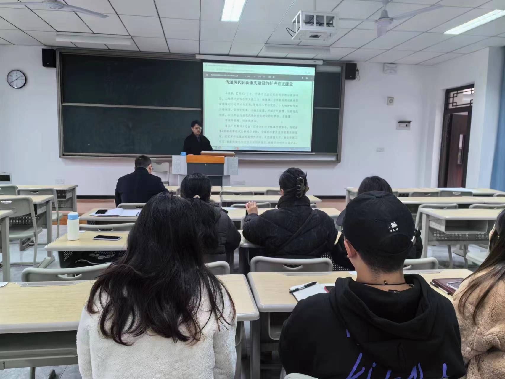 会议第二部分,陈熙委员对市委书记袁家军在宣传文化工作的主要内容“把握时代脉搏 引领时代发展”进行学习分享。陈熙同志总结到无论是重庆广电集团还是重庆日报报业集团都积极参与到现代化新重庆建设工作中,全力打造全媒体传播体系,焦深入贯彻党的二十大精神和市委工作部署,唱响主旋律、传播正能量,把握时代脉搏。同样,我们作为高校党员教师,我们也需要去切实关心校园工作,参与校园媒体建设中,为重庆建设奉献自己的一份力。