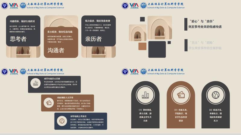 学生突发事件处置最考验辅导员老师的综合素质能力,学生安全无小事,老师们只有做好日常工作积累,才能在关键时刻临危不乱。通过本次分享会,老师们在沟通交流中熟悉了突发危机事件处置流程,提高了的应对能力,也更加明白了日常工作中做好预防的重要性,为处理学生突发事件积累了一定经验,有效维护安全和谐的校园环境。
