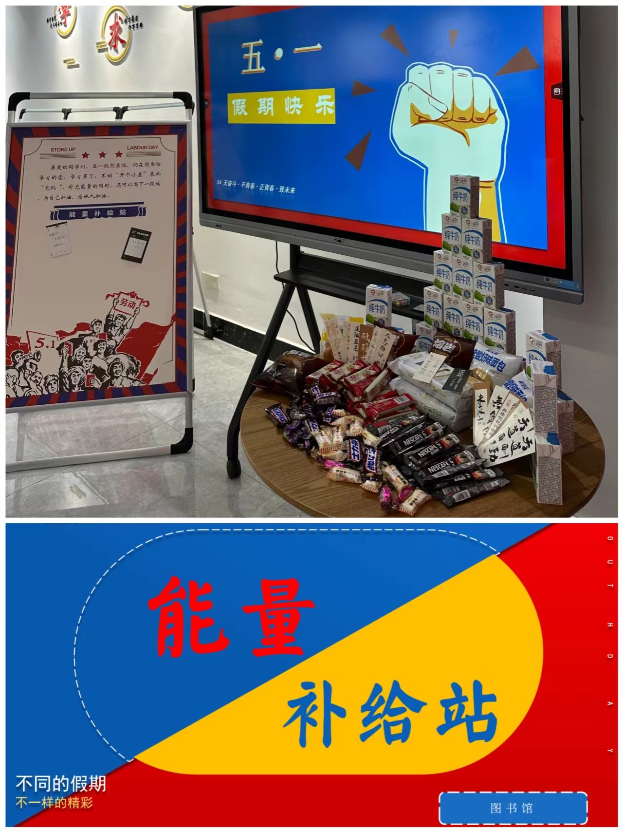 图书馆是大学学习的一个重要资源,是学生提升自我的重要场合,很多知识的学习和探索都发生在图书馆里。彭洪斌先生曾言,责任可以让我们把事情做完整、爱可以让我们把事情做得更好。在五一小长假到来之际,图书馆特举办“能量补给站”五一主题活动,为五一期间坚持到馆学习的同学们提供能量补给,表达关怀。