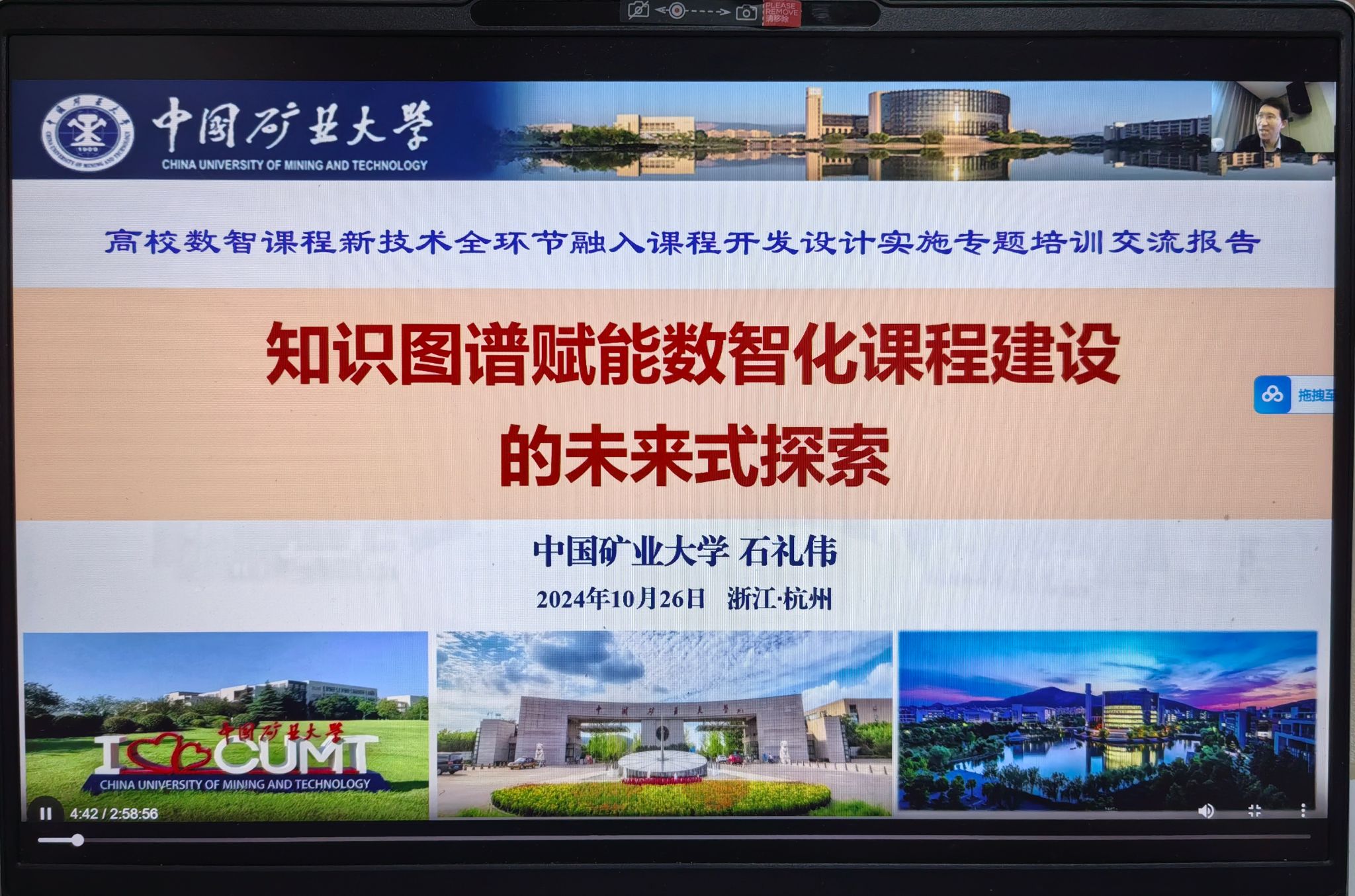 10月26日上午由中国矿业大学石礼伟教授授课,主题是《知识图谱赋能数智化课程建设的未来式探索》,石教授是国家级课程思政教学名师和团队负责人,国家级一流本科专业建设点、国家级课程思政示范课程、国家级一流本科课程负责人,并多次获得教学竞赛和成果奖。
