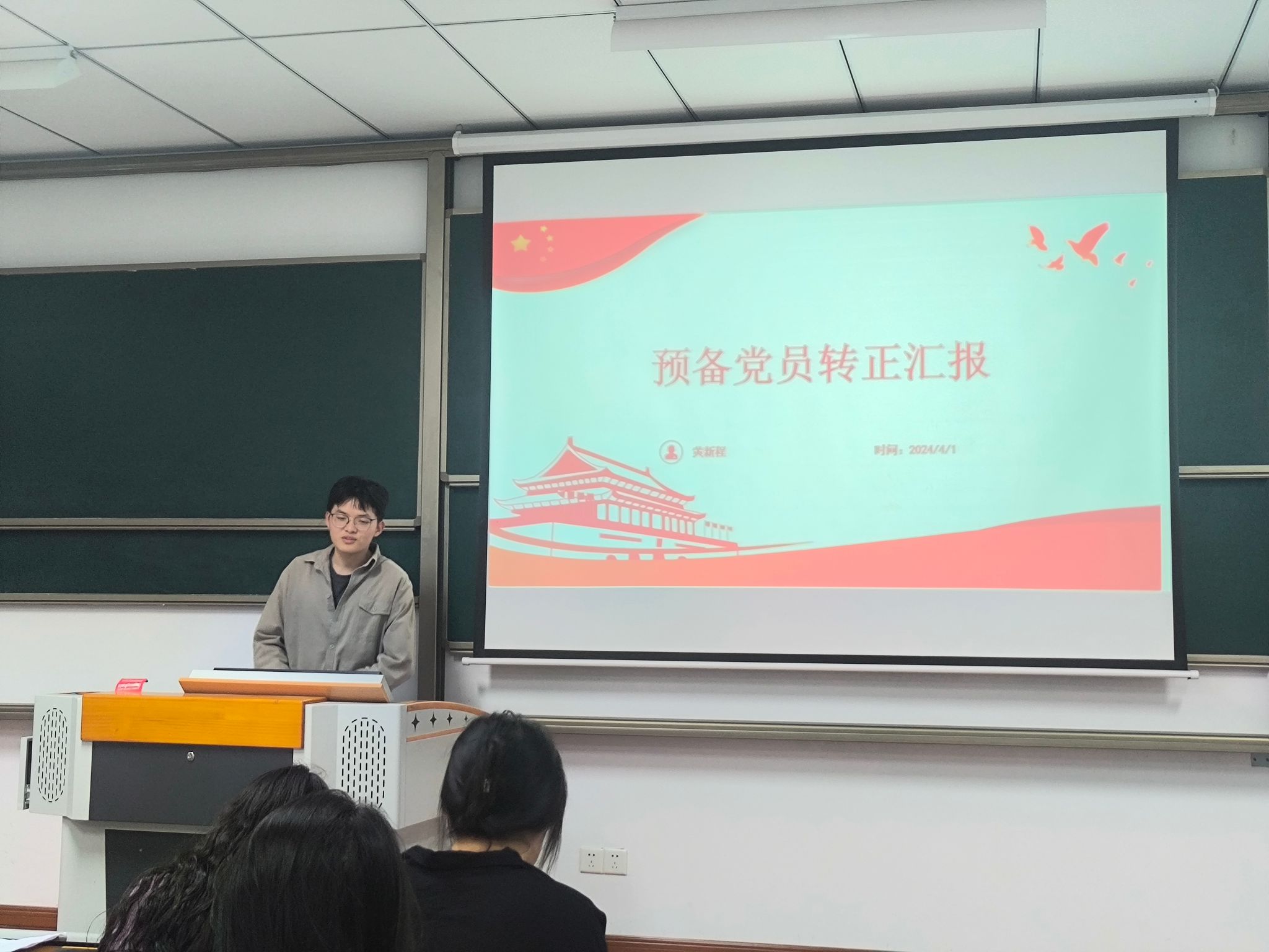 会议严格按照程序进行。两位预备党员汇报了自身在预备期间思想、工作、学习等方面的表现,表明入党动机和奋斗决心;入党介绍人汇报预备党员的表现情况,认为可以将其按期转为正式党员;支委会汇报审查情况;与会党员针对二位同志的现实表现进行充分讨论;大会经无记名投票方式表决,二位同志全票通过,按期转为正式党员。
