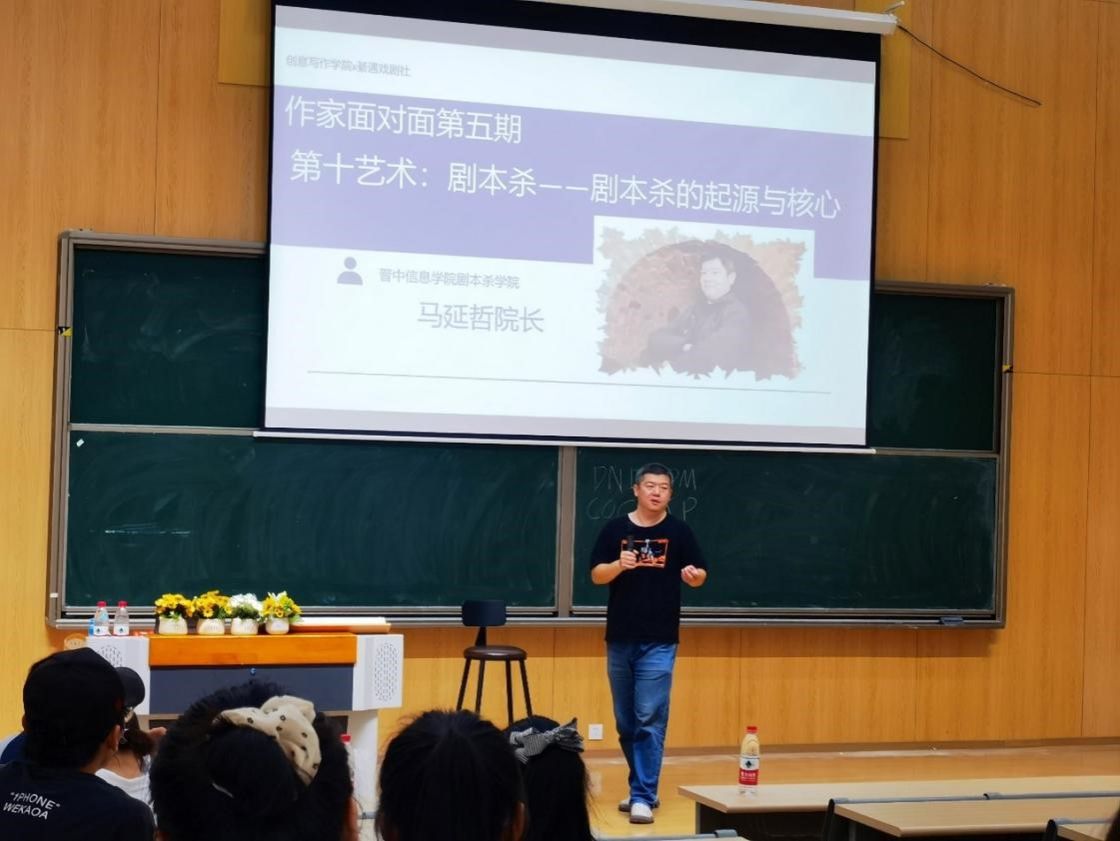10月17日,綦江校区创意写作学院在玉棠书院阶梯教室进行“作家面对面”第5期活动,带领同学们走进科幻文学的世界,领略剧本杀的神奇魅力,马延哲老师带领同学们更进一步了解剧本杀。推理、机制、情感、恐怖,在老师的解说下,哪一个是你pick的类型?线下体验环节,脑力与演技齐飞,角色扮演,沉浸式演绎,感受最真实的故事,最刺激的推理,锻炼玩家强大的逻辑思维能力。