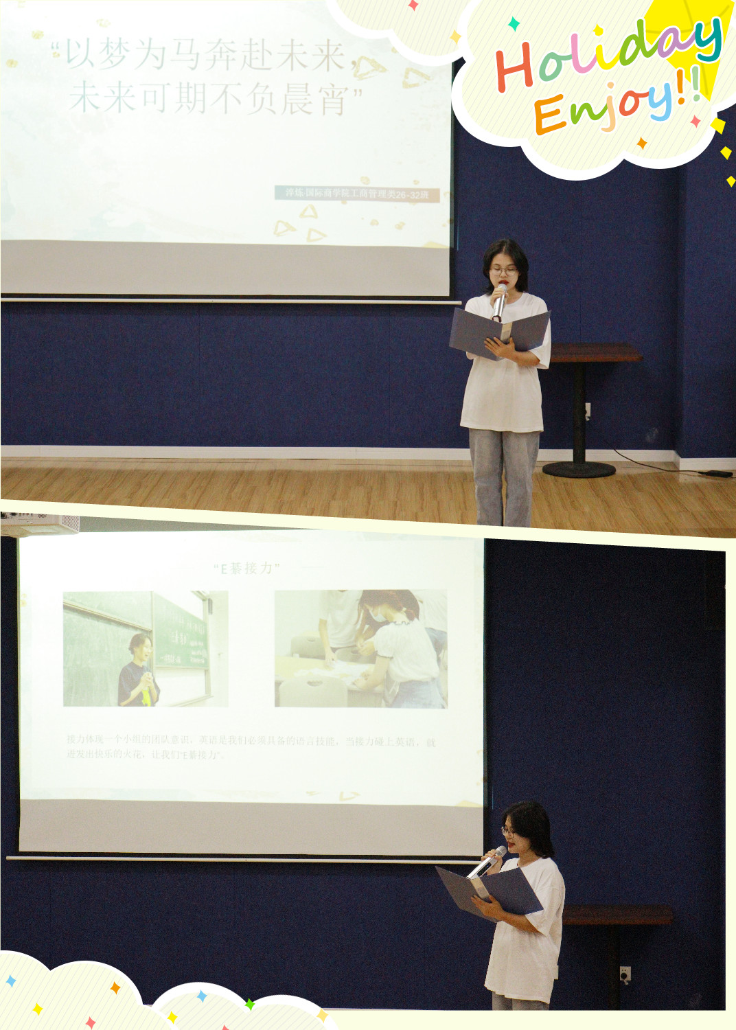 淬炼·国际商学院2021级工商管理类26-32班于6月3日在苍山阶梯活动室举行了主题为“以梦为马奔赴未来,未来可期不负晨宵”的主题年级会,内容由早自习情况汇报、宿舍安全卫生知识竞答、学风建设三个部分组成,意在提升同学们的早自习积极性,增强同学们的寝室安全卫生意识,培养同学们良好的学习行为习惯。