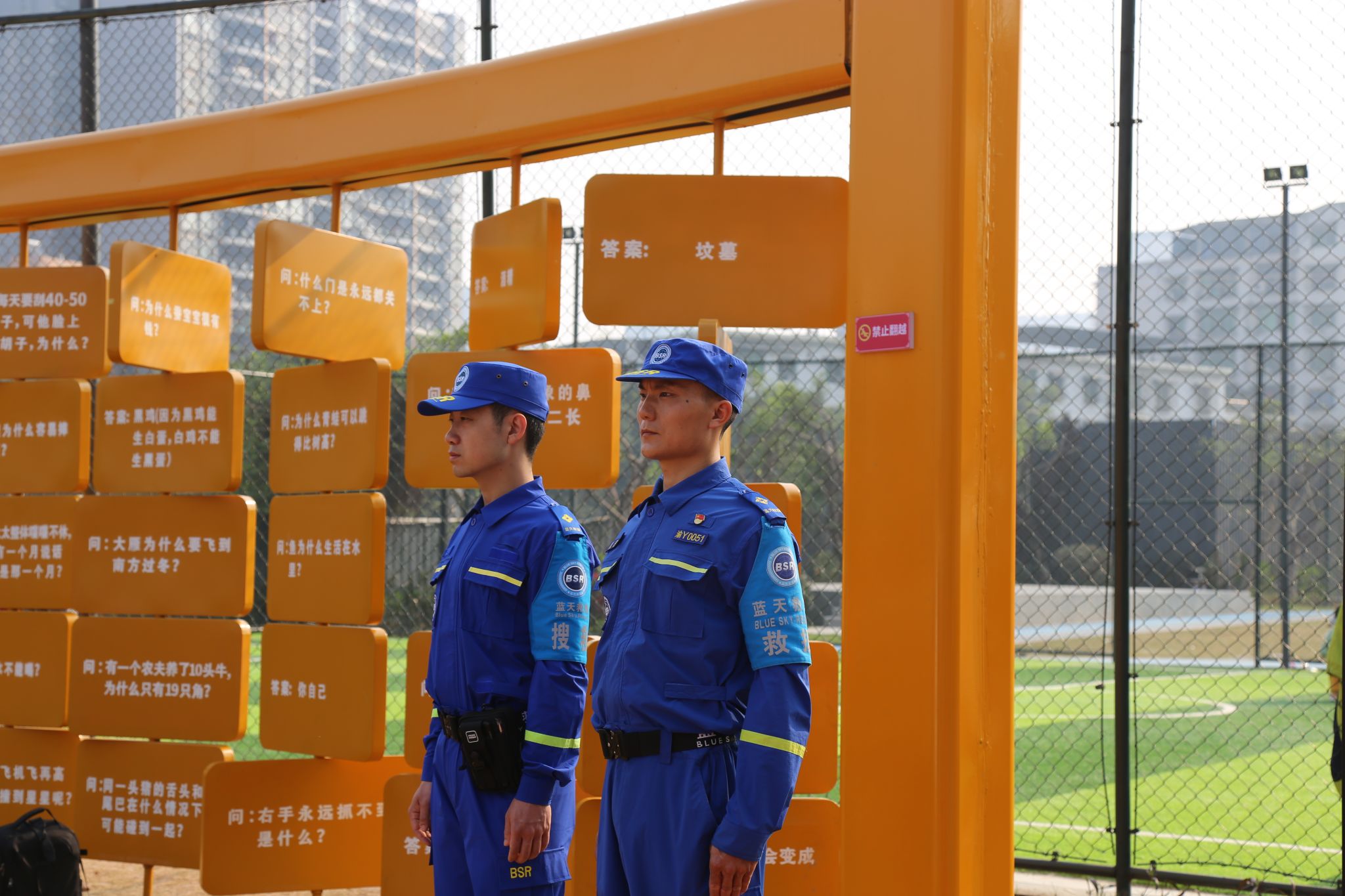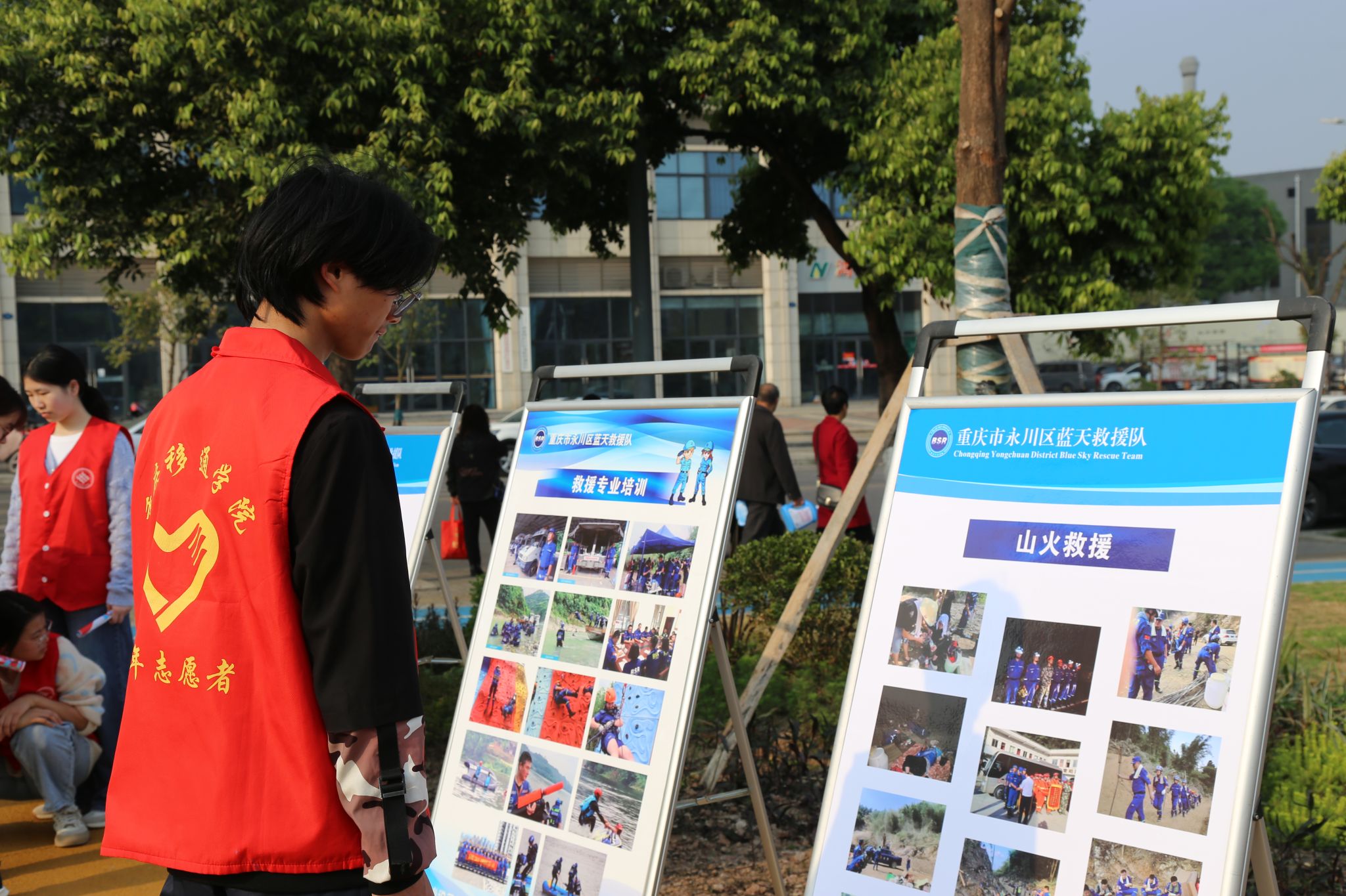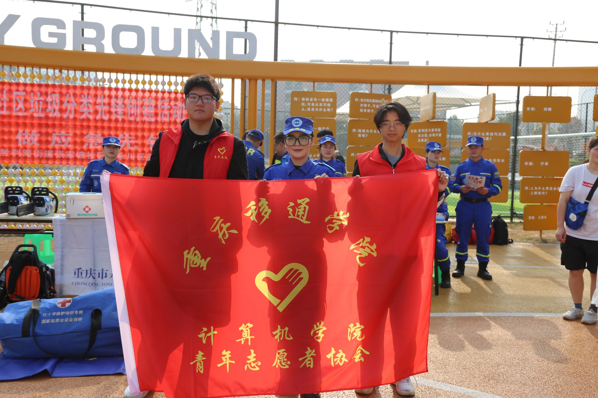 本次活动由重庆移通学院计算机学院辅导员兼永川区蓝天救援队秘书组组长彭兰萱担任主持。讲师团队包括永川区蓝天救援队副队长杨炀,负责讲解绳结使用及简易担架制作;永川区蓝天救援队装备组组长唐亮,负责讲解山火装备的穿戴及使用方法、火场逃生技巧(湿毛巾的使用)以及防踩踏知识;永川区蓝天救援队装备组组长张庆雪,负责讲解救生衣等水域救援装备的穿戴及使用方法、皮划艇的使用技巧及用途,以及溺水预防方案。