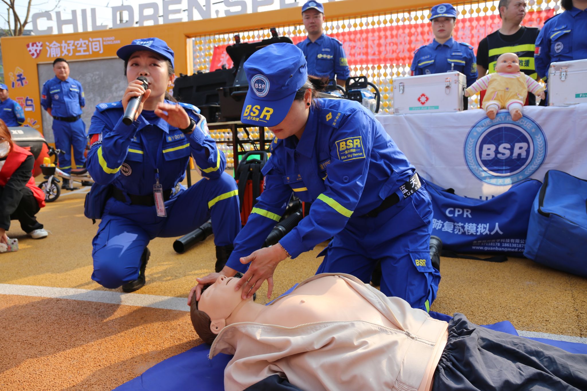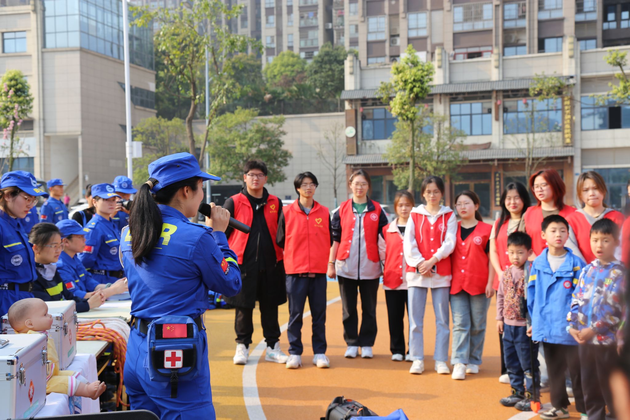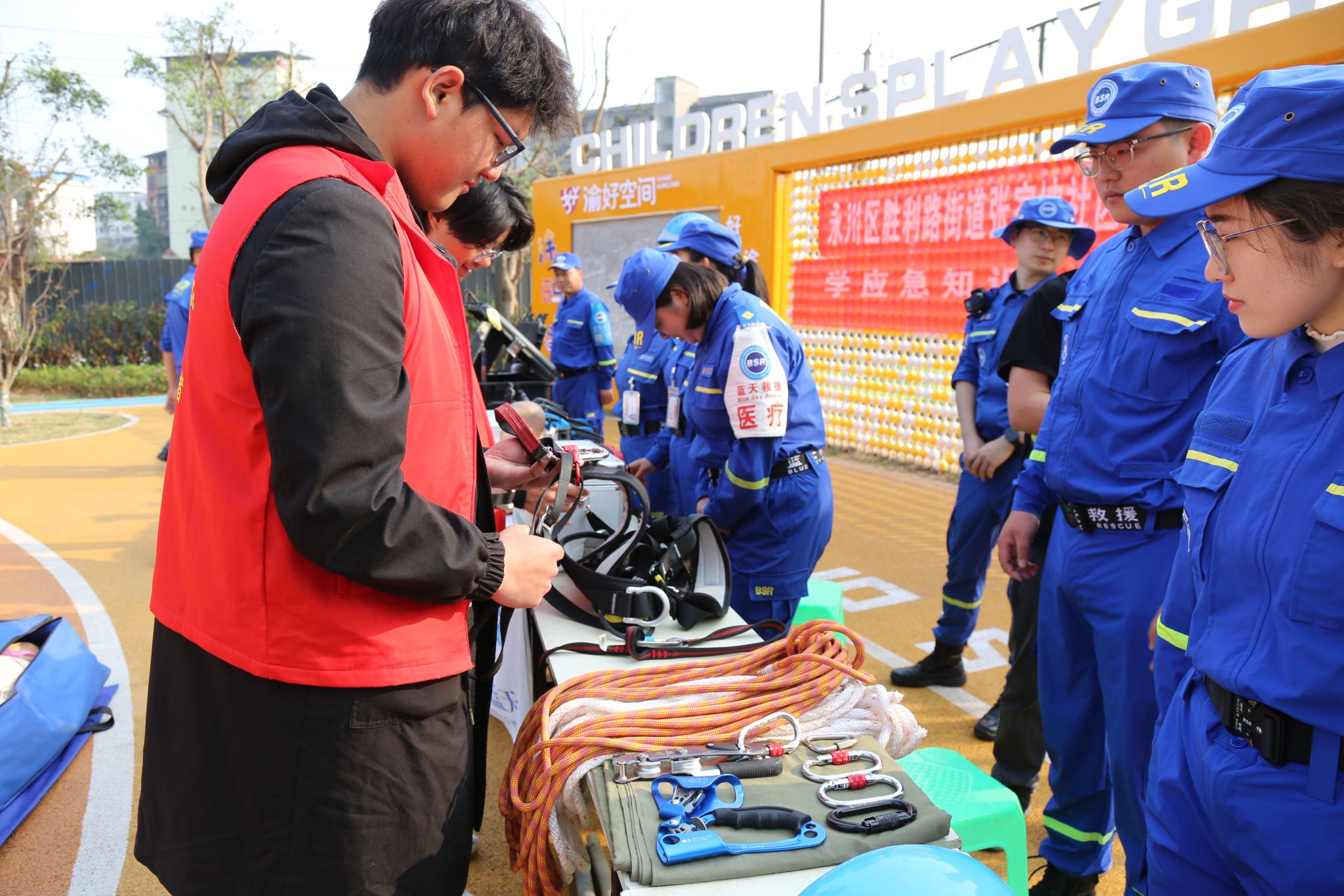 活动现场,学生和家长们在听取讲解心肺复苏、止血包扎等基本急救技能的同时,还亲身尝试了救援装备,进一步加深了对救援工作的了解。此外,活动还设有急救用品和常用救援用品展示区,让居民和学生深入了解救援知识。