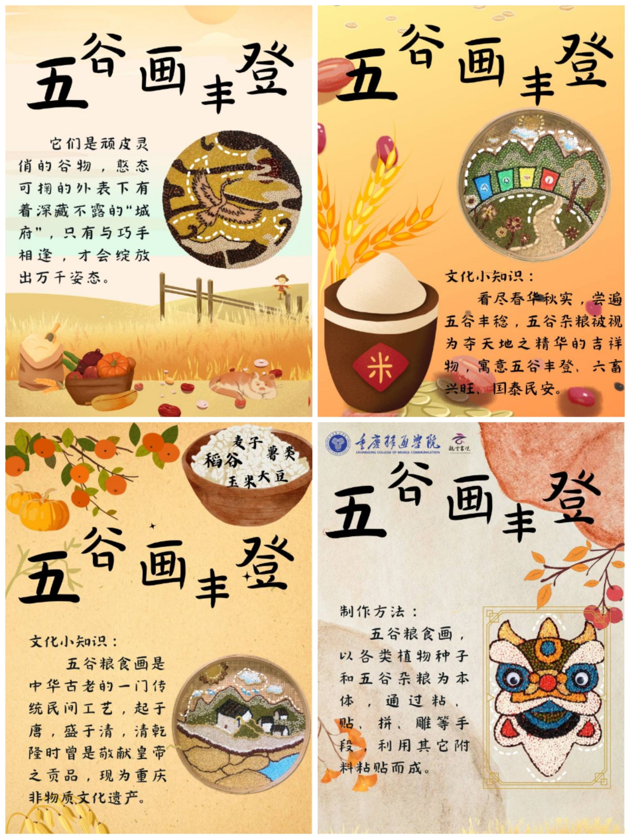 “春耕、夏耘、秋收、冬藏,四者不失时,故五谷不绝。”五谷杂粮寓意深刻,是中国传统文化的重要元素,也是南北各方的重要代表符号。为加深书院学子对中华优秀传统文化的认识和体验,使书院学子领略非物质文化遗产的非凡魅力,观云书院于10月13日在GY104芒种·华文书吧开展了“五谷画丰登”五谷杂粮绘画活动。同学们以各色谷物为素材,通过巧妙的拼接和创作,展示华夏民族的智慧与创造力。