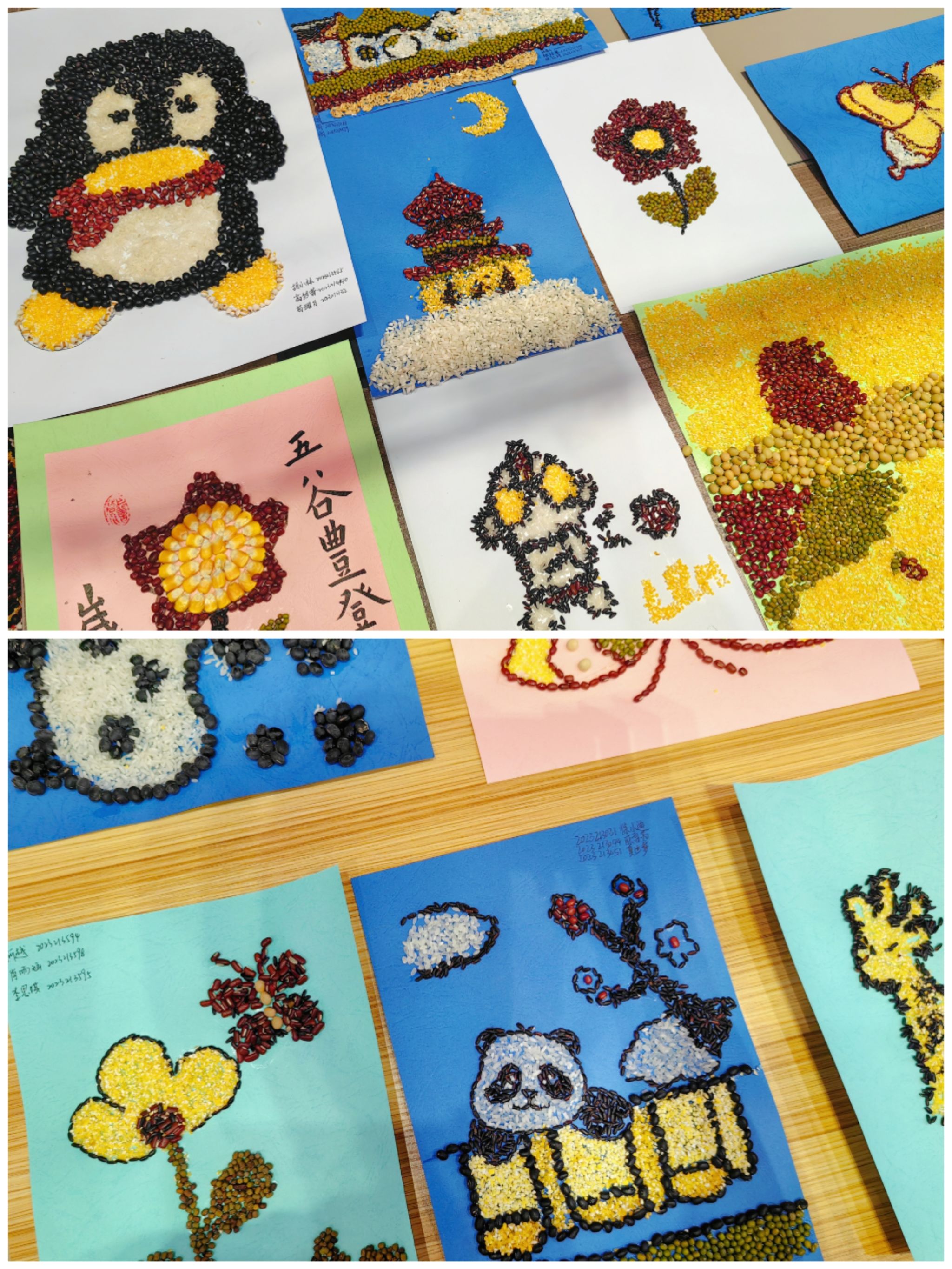 随着一幅幅作品大功告成,本期“五谷画丰登”五谷杂粮绘画活动圆满结束。通过这次活动的成功举办,同学们得以发挥自己的想象力和审美力,将五谷杂粮转化为独特的艺术作品,得到了愉快的创作体验,进一步加强了同学们对传统文化的了解和热爱,培养了同学们的文化意识和创造能力。也为他们的成长之路注入了更多的智慧和力量。