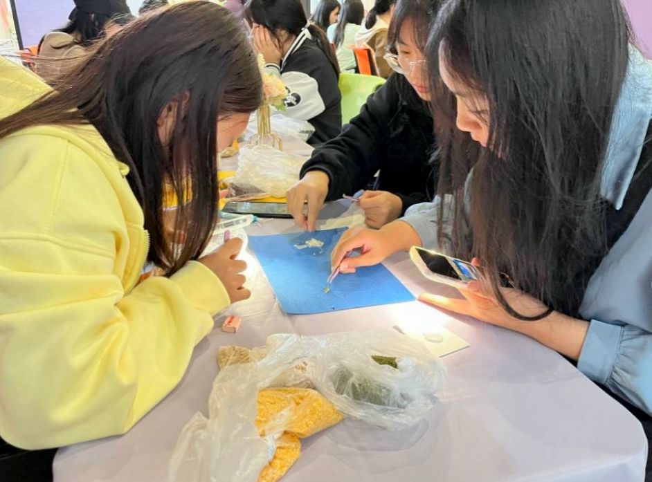 同学们看到五谷杂粮在他们的巧手下变成了一幅栩栩如生的图案,流露出自豪和喜悦。这是一项需要团队合作、灵活运用创意和耐心的活动,同学们在欢笑声中共同创作,展示了他们的创造力和团队精神。