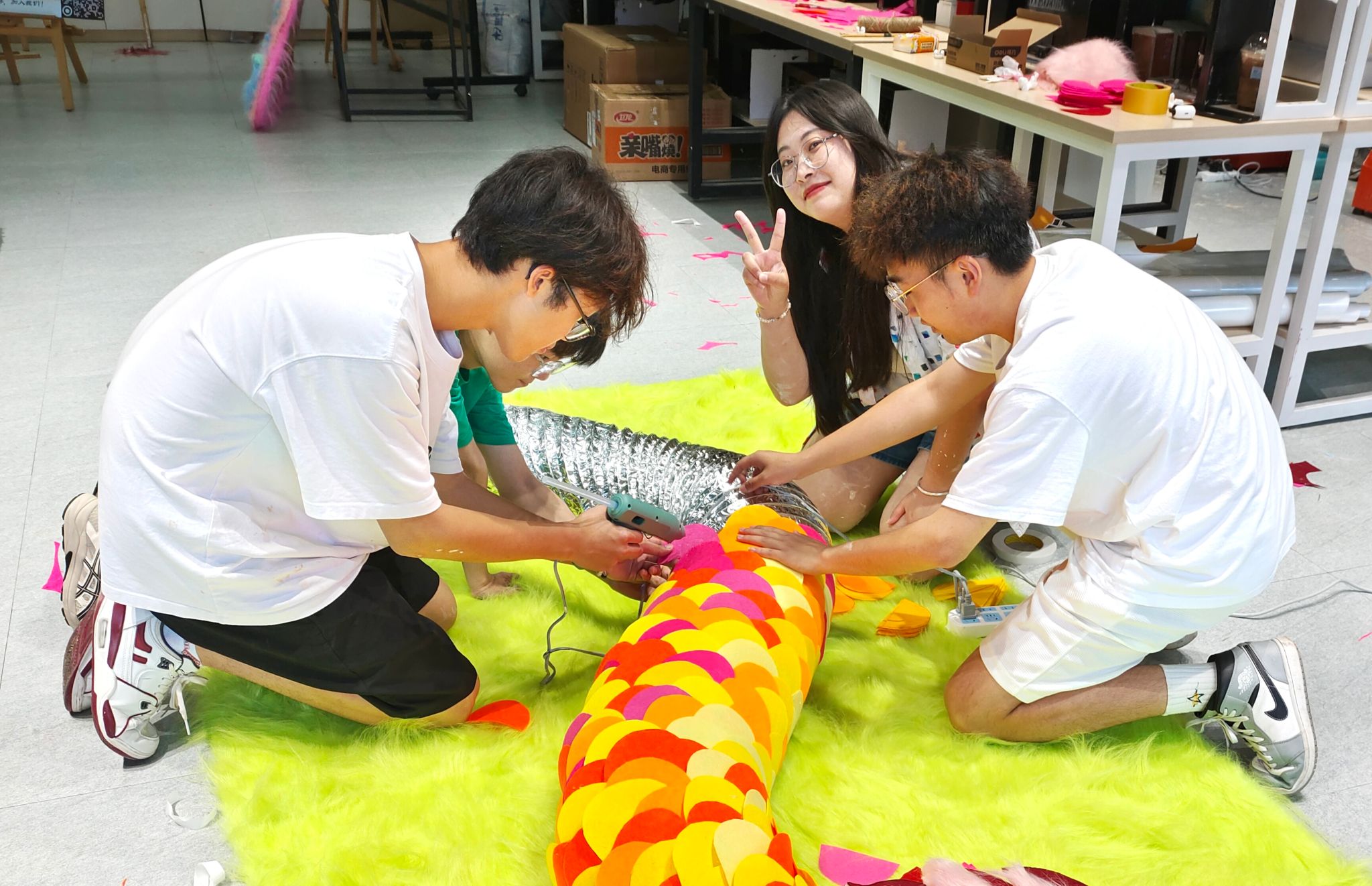 匠心独运,创新制龙。3月15日下午14:00,龙塑新生“可持续共创挑战”正式开始,参与者们自发来到改造现场,通过共创接力的形式开始了“低碳中国龙”的改造,此次活动区别于常规活动的报名形式,时间、场景、材料、参与方式均不设限,只要感兴趣,哪怕仅路过只有几分钟,都可以加入我们的共创计划,为实现“低碳中国龙”塑造助力。在1月有余的接力挑战中,30余名同学参与其中,旧物逐渐在“小小工匠”们手中重获新生,他们接力制作用闲置烟管编织龙身;以彩色布料勾勒鳞片;龙头经过精心裁剪、拼接;龙眼、龙角、龙须以彩绘点缀;一条栩栩如生、灵动腾飞的“低碳中国龙”在书院诞生。