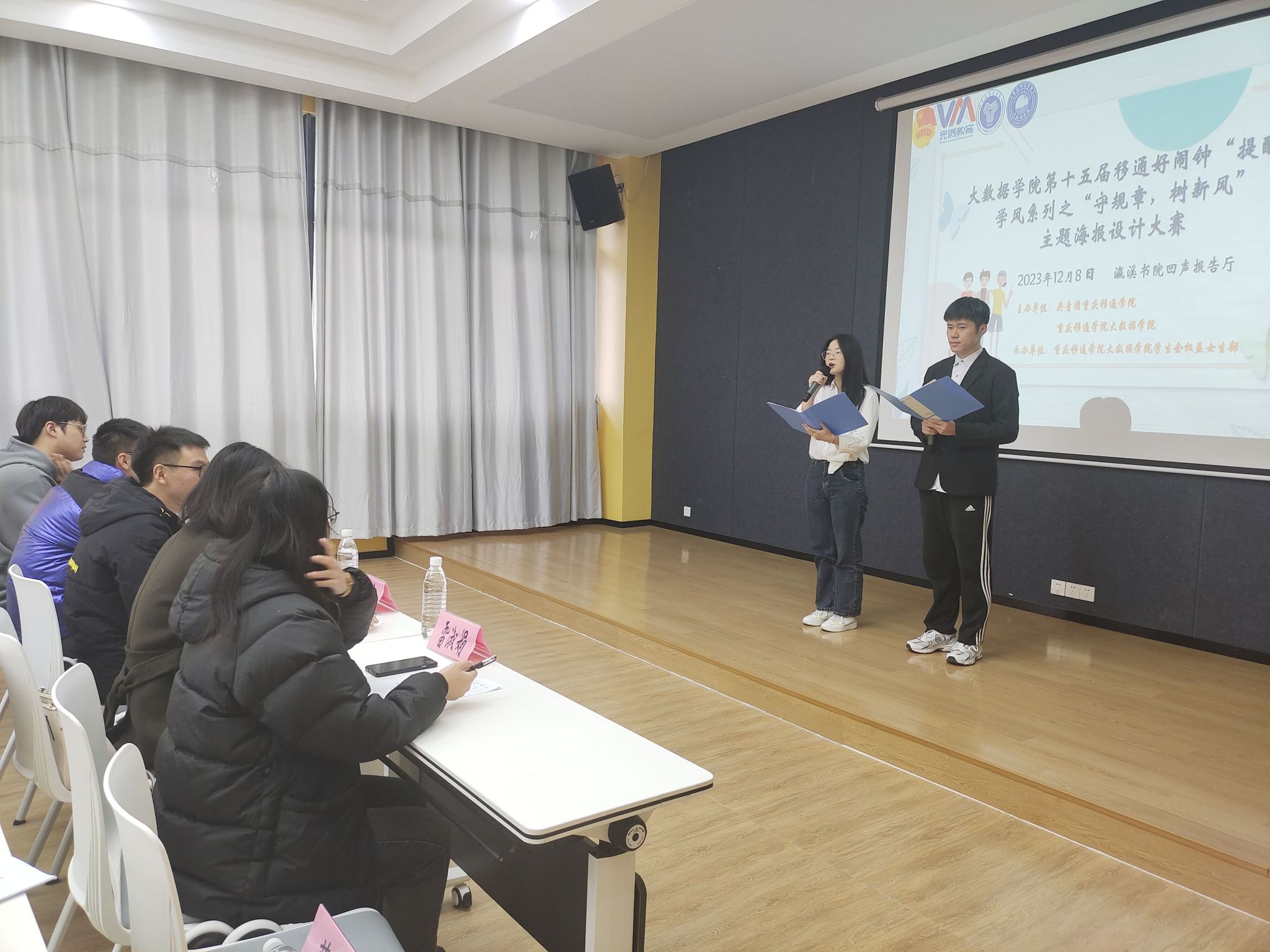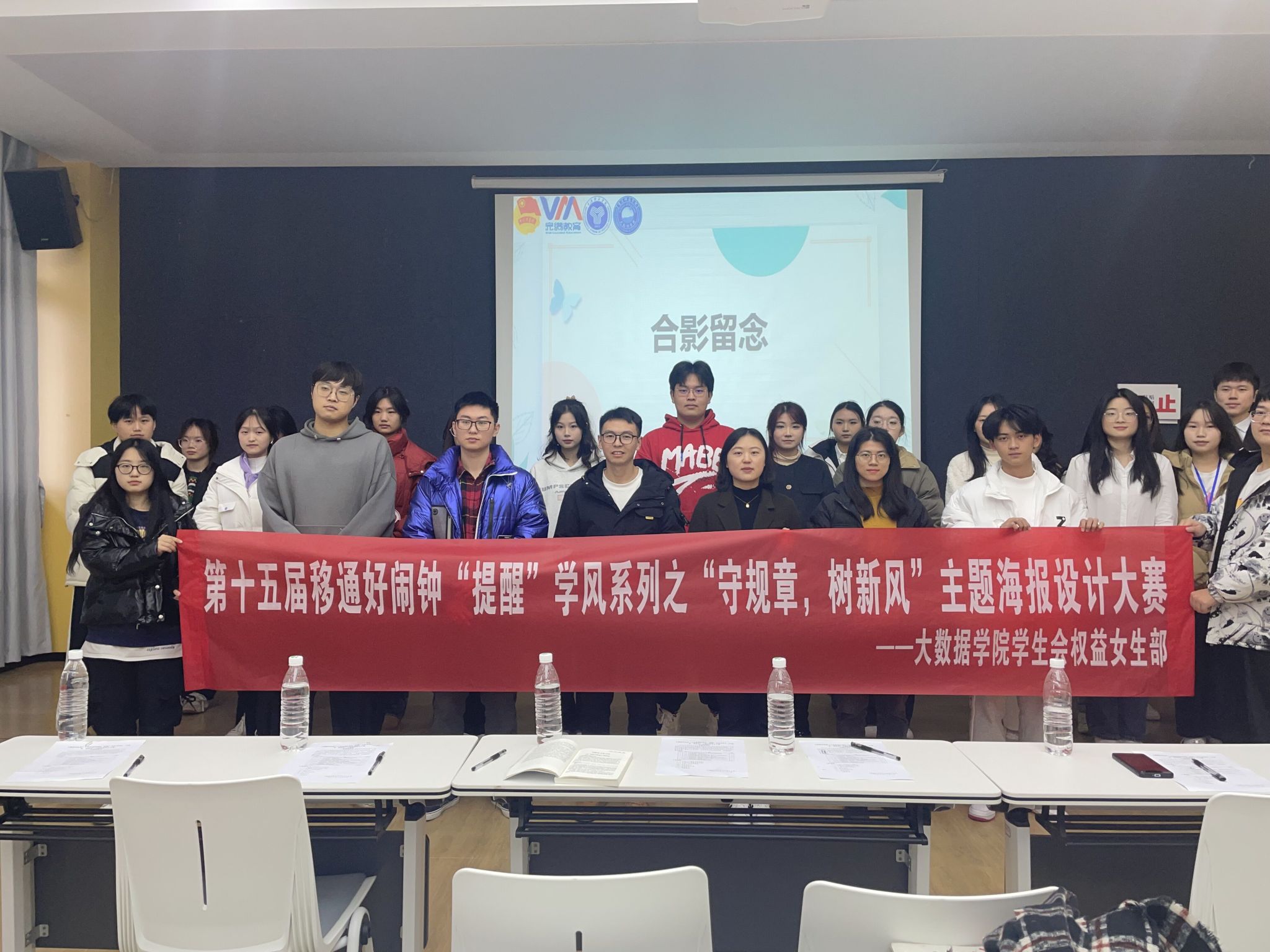 学风是一缕清风,是一种氛围,是一种追求,更是一种精神,学风是学校的灵魂,是学生的思想作风和学习方面所展示的精神,态度、风格、方法和习惯等要素的综合体现。良好的学风,可以鼓舞斗志,培养改革创新的时代精神;可以提升品质,培养诚信友爱的道德风尚。12月8日,由大数据学院权益女生部举办的“守规章,树新风”主题海报设计大赛决赛在瀛溪书院的回声报告厅圆满落幕。