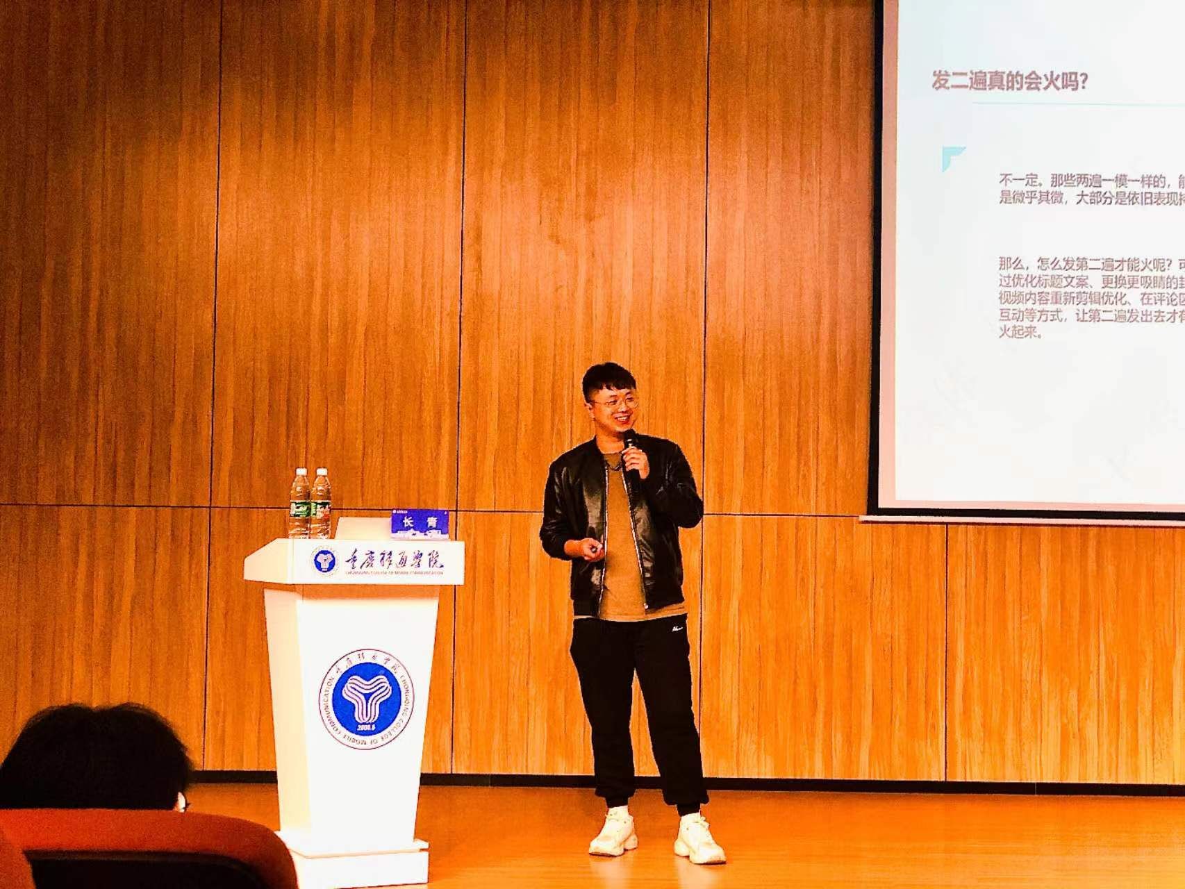 新媒体,作为数字时代的璀璨明星,正在以惊人的速度和影响力重塑信息传播的面貌,并深刻改变着人们获取信息的习惯。在这个变革与创新交织的时代,我们迎来了一场新媒体的盛宴。2024年4月11日晚19:00,知名新媒体讲师长青老师,受邀于数字媒体产业学院,在重庆移通学院綦江校区贤者楼131多功能报告厅,为莘莘学子带来了一场题为《抖音实操蓝皮书》的精彩讲座。