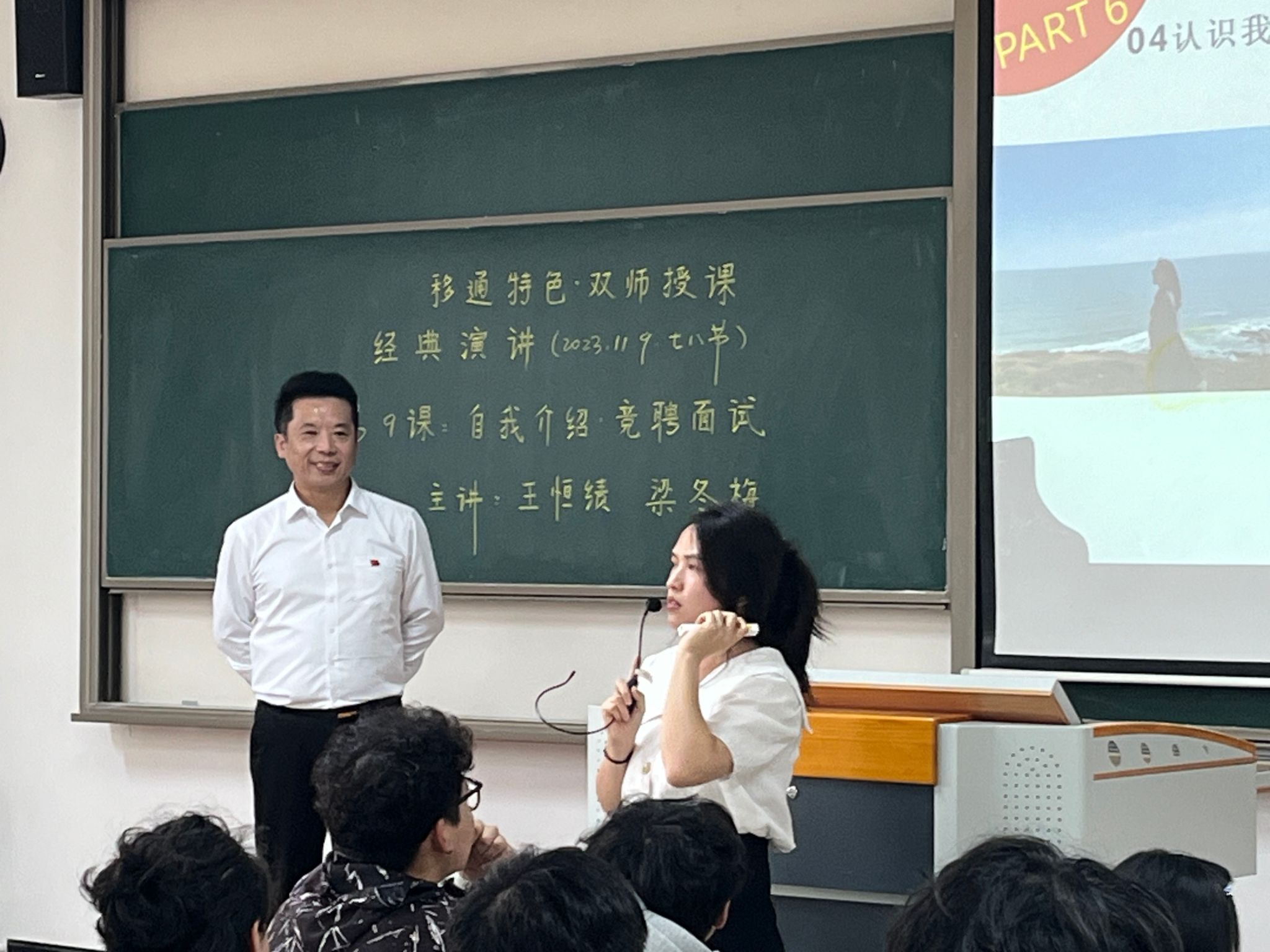 接着又有两位男女同学上台面试,都有极为优质的表现,让初来乍到的梁老师,感到了《经典演讲》课的魅力和移通学子的优秀。