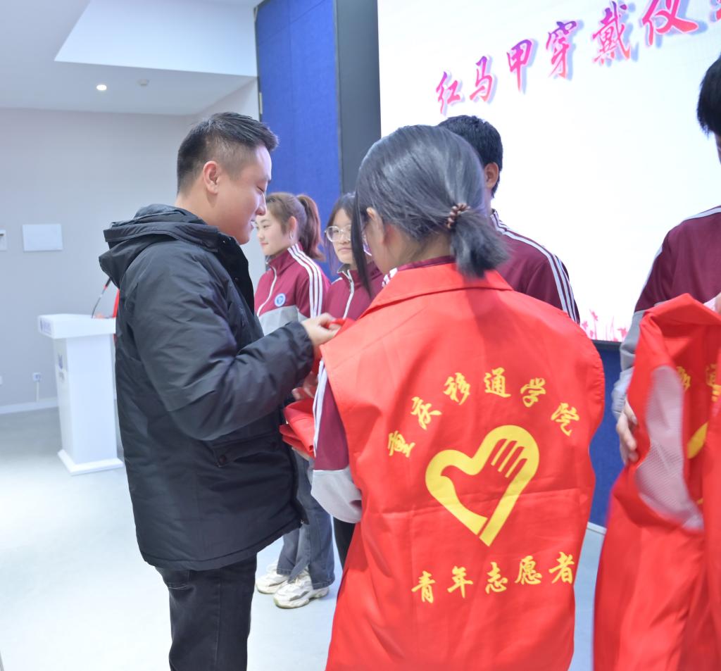 红马甲是志愿者的象征,脱下“红马甲”,每位移通学子都有自己的个性和特点,但穿上“红马甲”,他们就会整装出发、一致行动,这就是青年志愿者的样子。校团委副书记蔡星宇老师为志愿者代表传递红马甲,接过红马甲,也接过了光荣,接过了使命,接过了我们对志愿服务的追求和热爱。这一件件“红马甲”、一抹抹“志愿红”,汇聚成志愿星河闪烁绽放,引领越来越多的移通学子积极投身志愿服务。