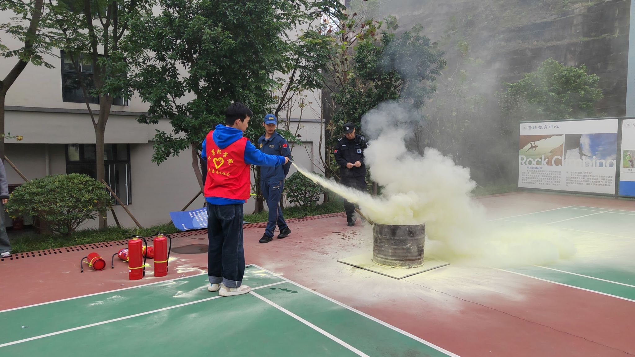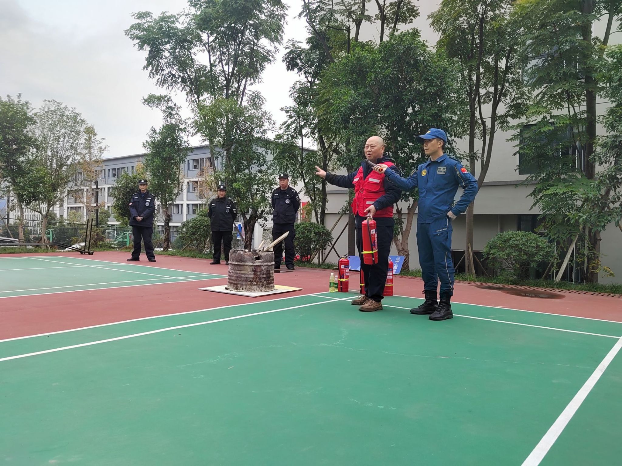 精彩的技能演示环节随之正式登场。蓝天救援队队员曾小波同志手法娴熟、步骤清晰地演示了灭火器的正确使用方法:“同学们,在使用灭火器时,我们要记住‘提、拔、瞄、压’这四字。首先,提起灭火器,站在火源的上风方向;然后,拔掉保险销;接着,瞄准火源根部;最后,用力压下把手,对准火源进行喷射。”他边讲解边操作,让同学们直观地学习到面对火灾时如何正确操作灭火器进行初期扑救。队员李姚军同志则以敏捷的身手、规范的动作演示了绳索逃生技能。他迅速将绳索固定在牢固的物体上,并检查绳索的牢固性。然后,他双手握住绳索,双脚用力蹬地,身体迅速上升。在到达一定高度后,他双脚交叉夹住绳索,身体后仰,缓缓下降。其精彩的表现引得台下阵阵惊叹。