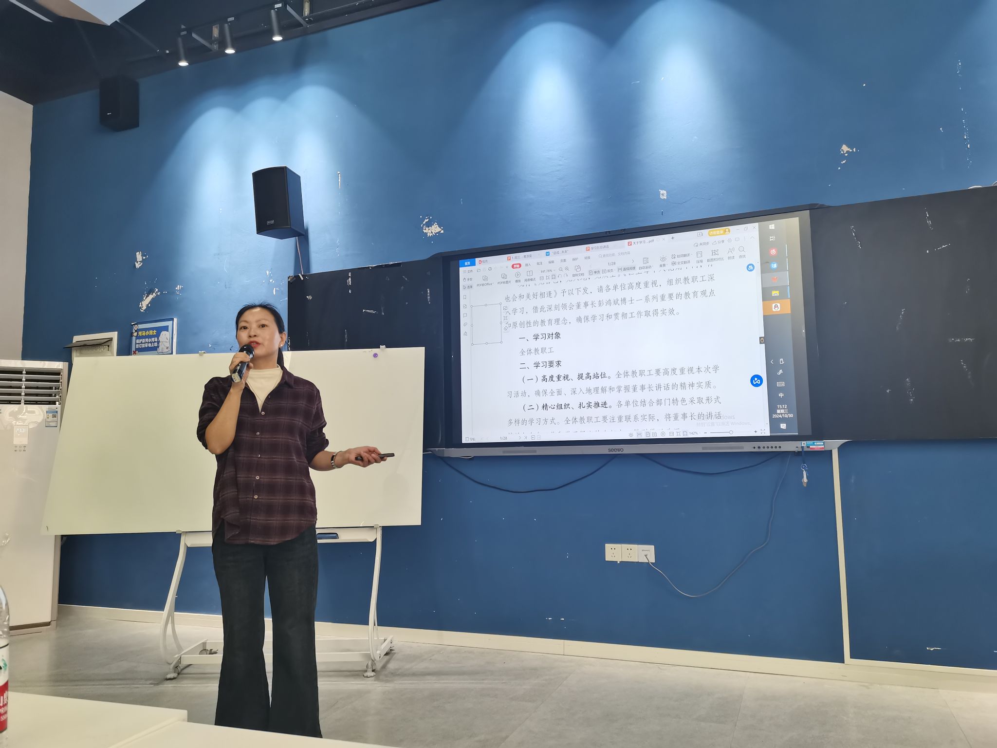 会议过程中,教师们积极讨论,气氛热烈,大家一致认为,彭鸿斌董事长的教育理念为当前教育工作指明了方向,提供了全新的思考角度和实用方法。会议最后,刘院长总结发言,强调全体教师要结合实际学以致用,将董事长的教育理念融入到教学计划的每一个细节中,不断提升教学质量,关心学生心理健康,为学生的全面发展创造更加有利的环境。
