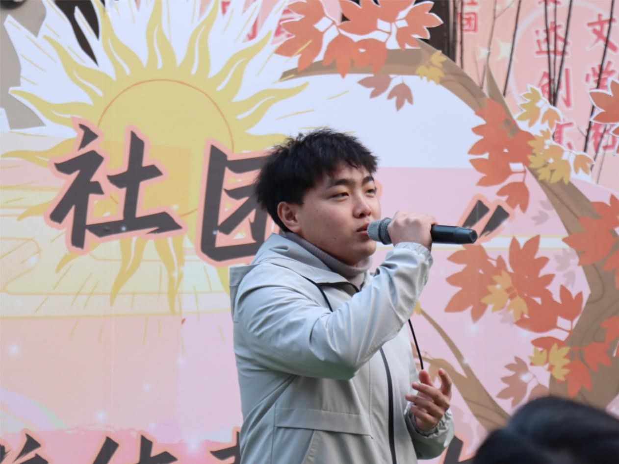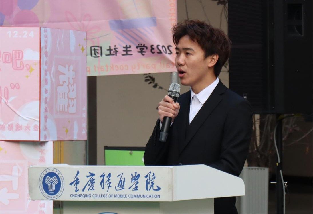 紧接着学生社团管理中心主席代表宋泽新分享——《乘完满之风,扬社团之航》。2023年社管与社团紧密相连,共同绘就了属于学生社团发展的完美画卷,种下属于自己的一片热爱。这一年有的是成就,有的是欢喜,在2023年末我们相聚在此,共同庆祝学生社团管理中心与学生社团在这一年的所有不凡成就。