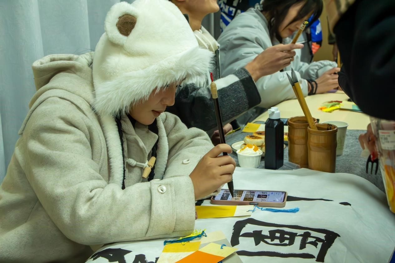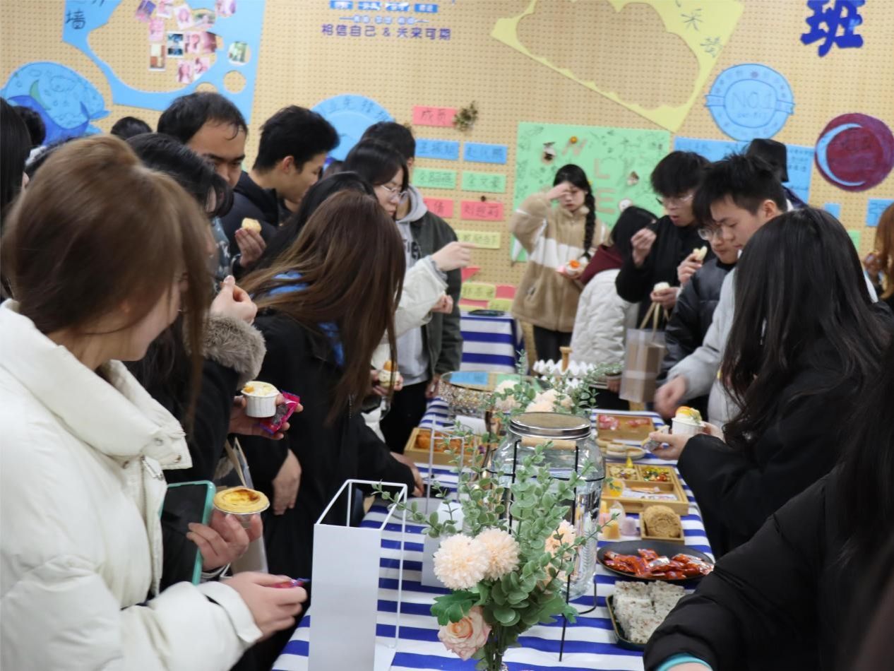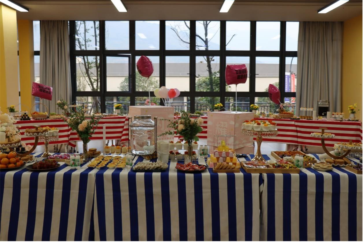 至此,邀请各位老师和同学们进入酒会交流环节。在酒会上,食物种类繁多,精美的餐具和丰富的糕点让人眼花缭乱。从口感、色泽到摆盘都十分精美,美味佳肴香气扑鼻,令人垂涎欲滴。社团指导老师与社团负责人们还有邀请的各个社团成员代表们互相交流着对未来学生社团的发展目标,互相传授着学生社团的运营经验,一旁的书法写作区为酒会增添雅趣,让老师和同学们共同领略书法之美,酒会增进他们彼此之间的友谊,也寄托对未来学生社团的美好发展的期望。