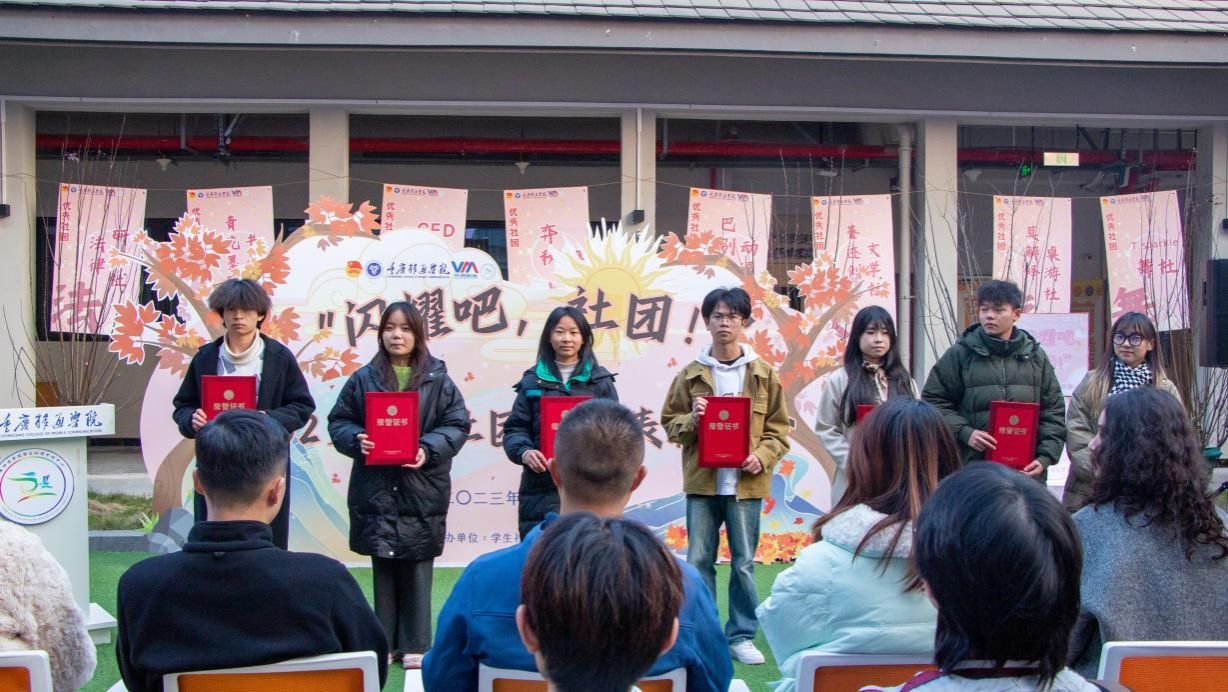 用心付出行动,助力社团发展。学生社团作为学校与学生的桥梁和纽带,在这一年中他们经历了风和雨,同时也收获硕果累累,为激励他们继续保持初心,共筑社团荣光。12月24日学生社团管理中心于瀛溪书院中庭举办了“闪耀吧,社团!”2023学生社团总结表彰大会。