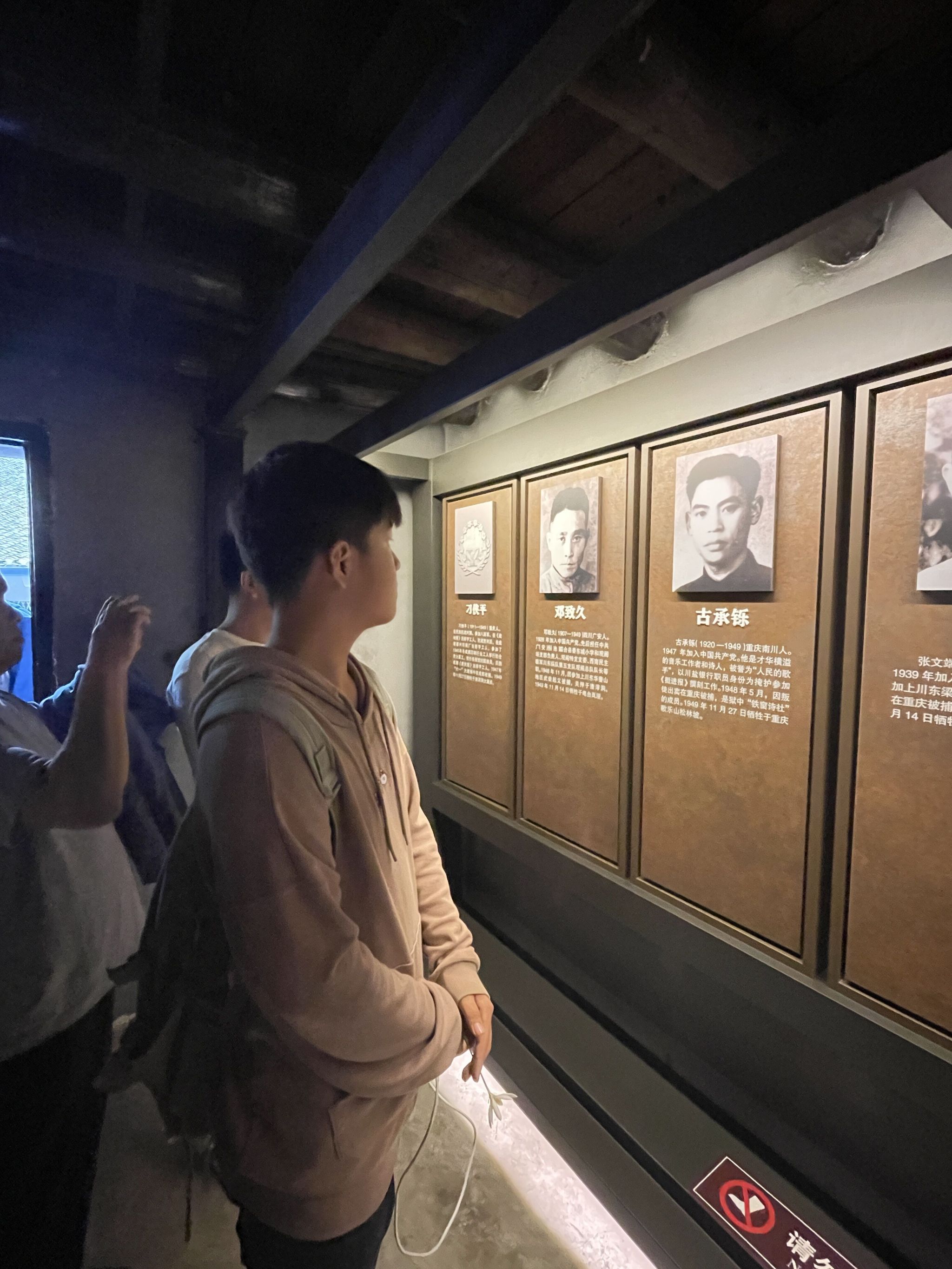 活动开始,师生们迈着庄重的步伐参观了碾米槽、狱中优待室、“11.27”大屠杀展示厅以及围墙缺口等遗迹。在参观学习过程中,师生们深刻感悟到了江竹筠、李青林、许云峰等被关押在渣滓洞的中国共产党人坚持操守、宁死不屈、“粉身碎骨浑不怕,要留清白在人间”的浩然正气。在带队老师的指导下,同学们在瞻仰区向烈士们敬献鲜花,缅怀先烈,以表达新时代大学生深深的崇敬之情。