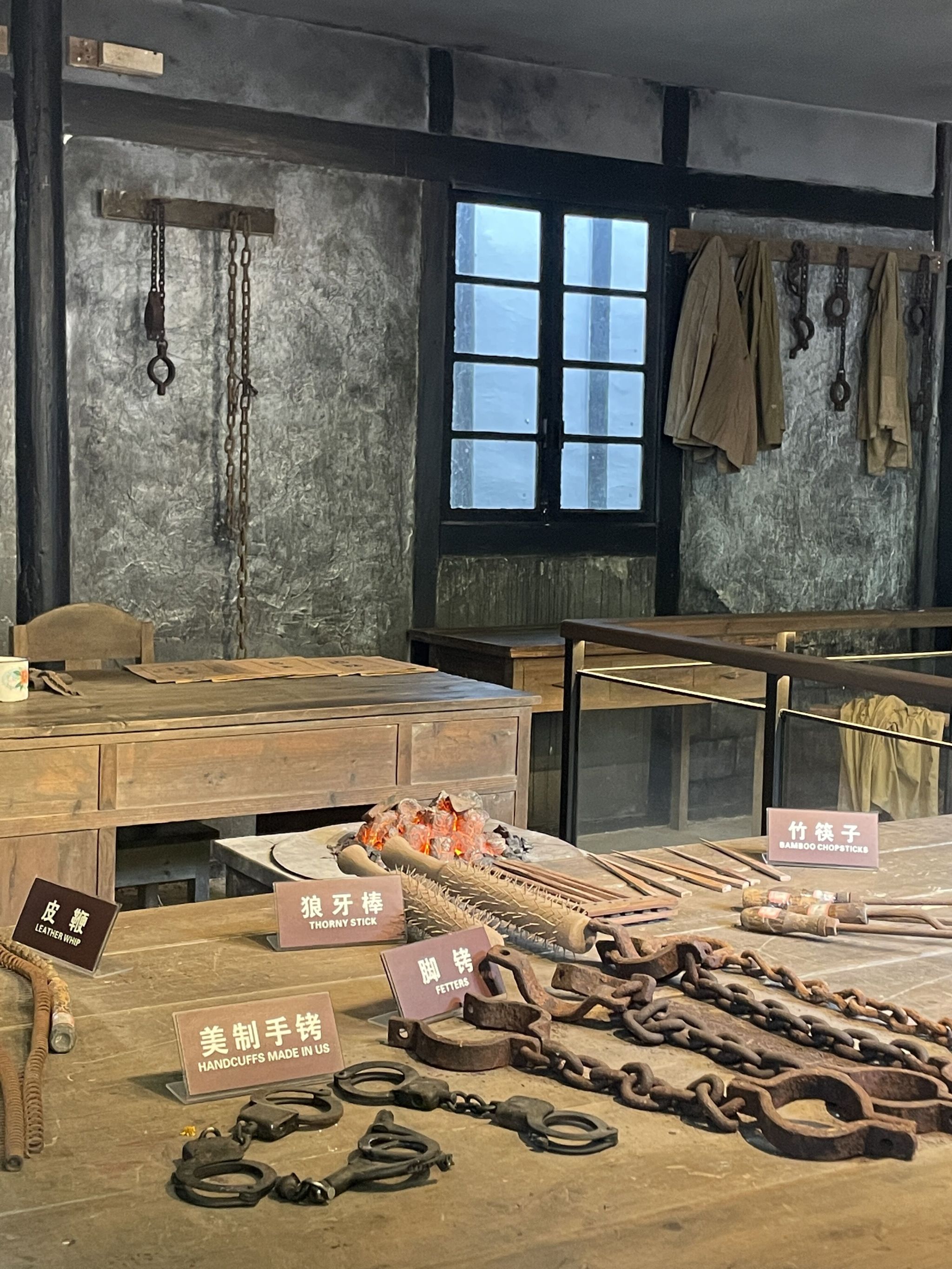 渣滓洞看守所旧址位于重庆市歌乐山麓,原为人工采煤的小煤窑,因渣多煤少而得名。渣滓洞只有两层,下层有三个房间,分别被称作“男牢”、“女牢”和“特务室”。男牢和女牢是关押革命志士的地方,而特务室则是审讯和拷打革命志士的地方。