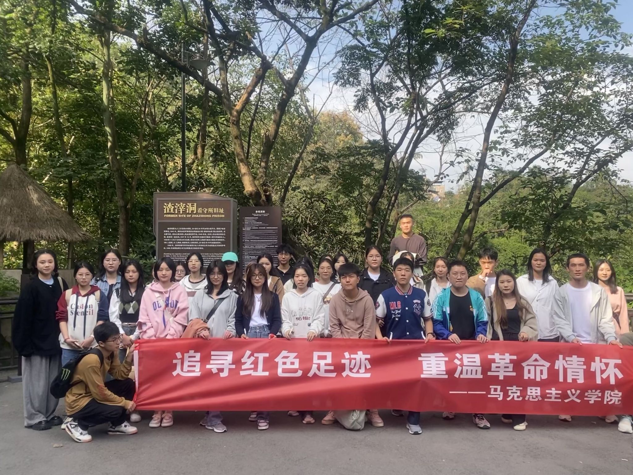 为深入贯彻落实习近平总书记关于弘扬红岩精神的重要指示精神,帮助大学生坚定理想信念,马克思主义学院马克思主义基本原理教研室于10月20日下午赴渣滓洞看守所旧址参观学习。本次活动由徐玲、李世漫两位老师带领32名学生代表参加。